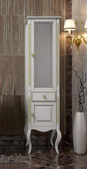 Вся мебель Opadiris покрыта прочным слоем влагостойкого лака. Материалы изготовления : Массив дерева — Бук. Корпус : Корпус мебели изготавливается из ламинированных панелей ДСП высшего сорта категории качества Е1 а в некоторых изделиях из ценных пород массива дерева (БУК). Обладает повышенной влагостойкостью и сопротивляемостью износам и ударам. Не выделяет вредных испарений в воздух, хорошо выдерживает воздействие бытовых химических средств. Края корпусных деталей так же защищены ПВХ кромкой. Отделка : Защитный слой фасадов и корпусных деталей состоит из нескольких слоев грунта и матовой отделочной эмали производства Herberiz (Германия) и Renner(Италия). Фурнитура : Надежная фурнитура BRASS (Испания Италия), BOYARD и HETTICH (Германия). Пенал в ванную комнату из коллекции Лаура представляет собой компактную мебель для хранения различных бытовых принадлежностей. Полотенца, косметика, халаты будут всегда у вас под рукой.