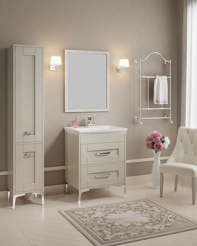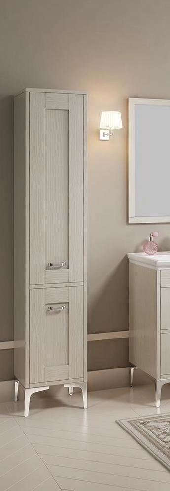 Пенал Прованс —Напольный пенал выполнен из влагостойкого МДФ в классическом стиле. Оснащен двумя распашными дверцами левого или правого открывания, возможна установка бельевой корзины. Хромированные нерегулируемые опоры. Наборный фасад. Модель производится в плёнке ПВХ.