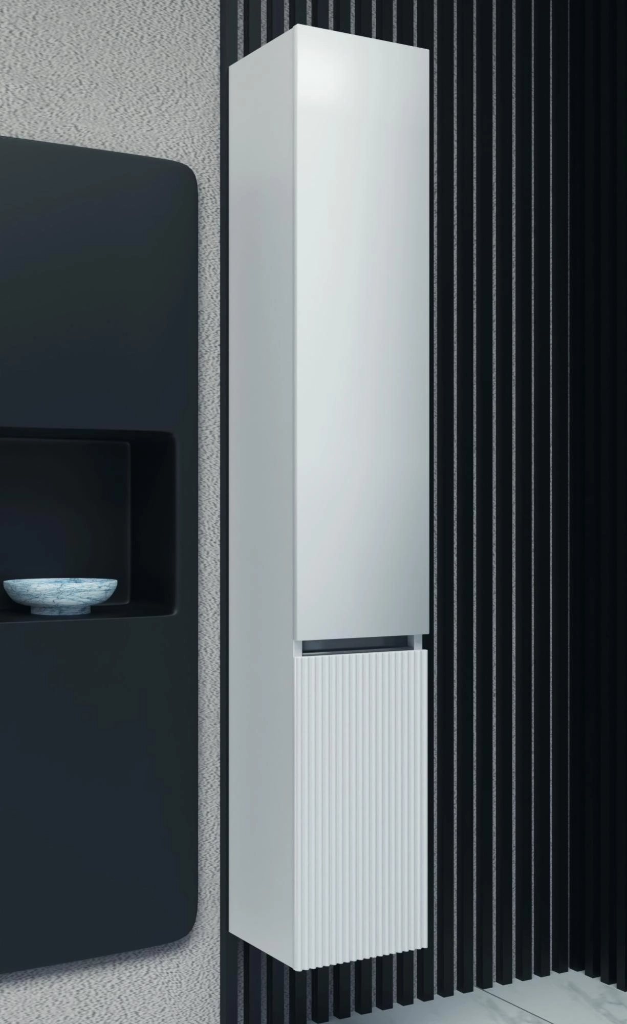 Пенал Турин -Навесной с двумя распашными дверцами, оснащенными механизмом плавного закрывания. Накладная ручка. Покрытие — Пленка ПВХ.