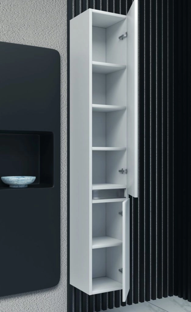Пенал Рольф -Навесной с двумя распашными дверцами, оснащенными механизмом плавного закрывания. Интегрированная ручка. Покрытие — Пленка ПВХ.