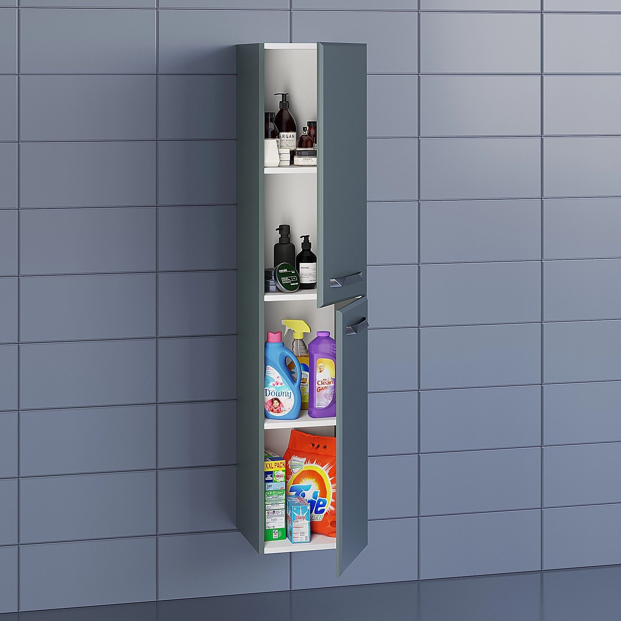 Подвесной шкаф-пенал Uperwood Foster для ванной комнаты с распашными дверцами, которые оборудованы ручками, представляет собой функциональное, надежное и практичное решение, которое отлично впишется в любой современный дизайн ванной комнаты. Элегантный минималистичный дизайн шкафа дополняет его безупречная матовая поверхность. Подвесной монтаж изделия обеспечит легкость в уборке помещения, и визуально даст больше пространства Вашей ванной комнате. Фасад и боковые стенки изделия, выполнены из МДФ. Изделие имеет ПВХ покрытие soft touch. Толщина МДФ 16 мм. Фурнитура и доводчики премиального качества. Шкаф-пенал поставляется в собранном виде, в комплект входит крепеж для подвесного монтажа и ручки. Настенный пенал для ванной комнаты из коллекции Foster отлично дополнит подвесные тумбы с раковинами Uperwood Foster шириной от 60 до 100 см в черном, белом или графитовом цвете. Также можно собрать полноценный комплект, добавив зеркало с led-подсветкой из той же коллекции Foster.Пенал Uperwood Foster - 1 шт., крепеж для подвесного монтажа, ручки