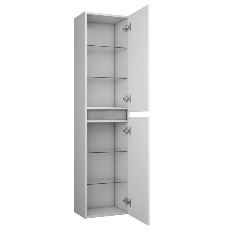 Материал корпуса МДФ. Материал фасада МДФ. Покрытие корпуса ПВХ. Покрытие фасада ПВХ. Цвет белый/глянец .Система хранения с дверками. Механизм доводчика. В комплекте: крепления/полки стеклянные.