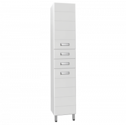 1. Вся мебель изготовлена на оборудовании производства Германии, Австрии, Италии 2. При изготовлении мебели для ванных комнат Style line используют только качественные влагостойкие материалы 3. Корпус изделий изготовлен из влагостойкой ДСП 16 мм, торцы деталей корпуса обработаны кромкой ПВХ толщиной 0,4 мм, фасады мебели изготовлены из МДФ толщиной 16 мм производства завода "Кроношпан" - ведущего российского производителя МДФ и ДСП 3. Все материалы, используемые нами при производстве мебели, имеют сертификаты соответствия 4. Для приклеивания пленки ПВХ на лицевую сторону элементов используется однокомпонентный клей производства Италии, а это значит, что исключена вероятность нарушения консистенции клея, и, следовательно, снижения качества приклейки пленки 5. Для наших изделий мы используем фабричную фурнитуру лучших производителей, покрытую антикоррозийным составом, что позволяет эксплуатировать ее в агрессивной влажной среде ванных комнат 6. Производственный цикл построен таким образом, что вся мебель проходит контроль качества на каждом этапе производства, что сводит к минимуму вероятность возникновения производственного брака Колонна напольная "Ирис" с прямоугольными фасадами современного дизайна, декорированная врезными ручками хром/матовый хром