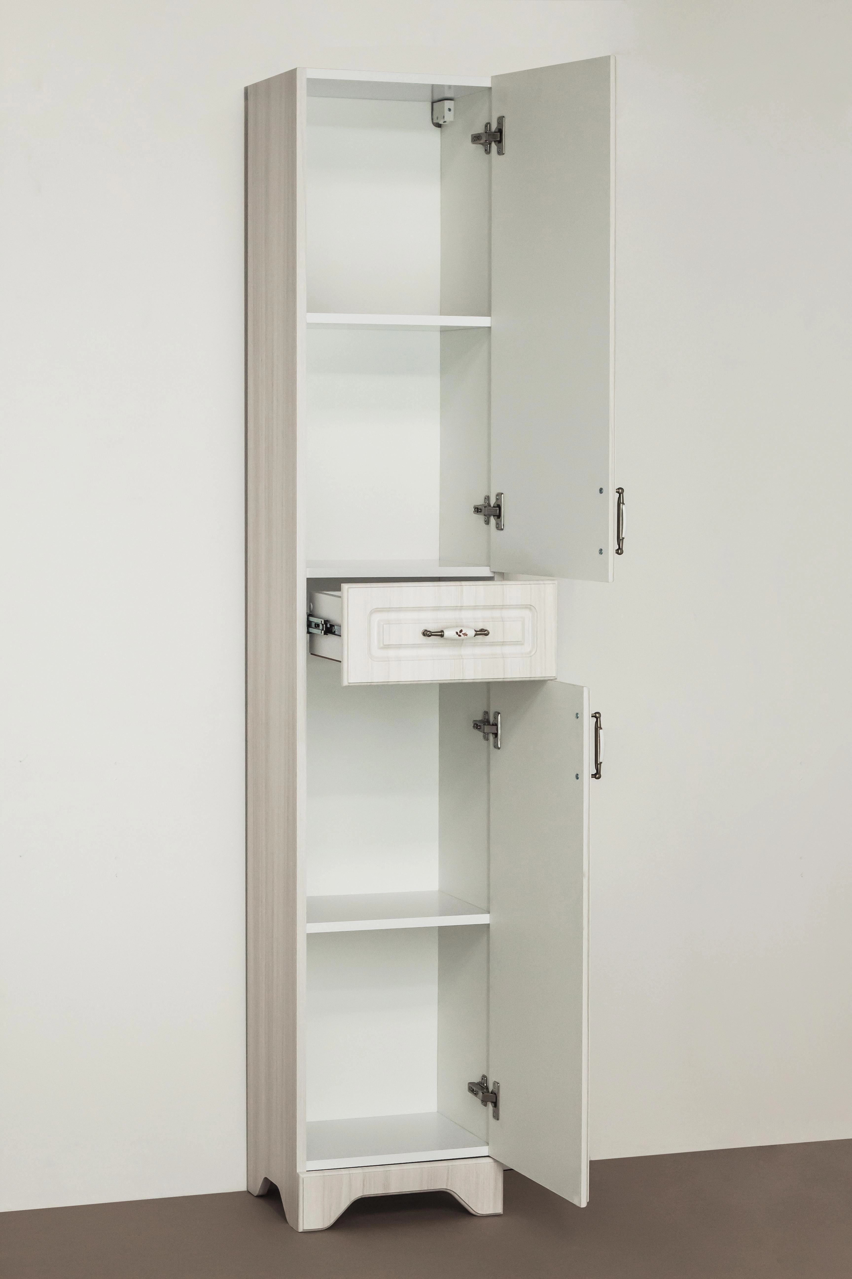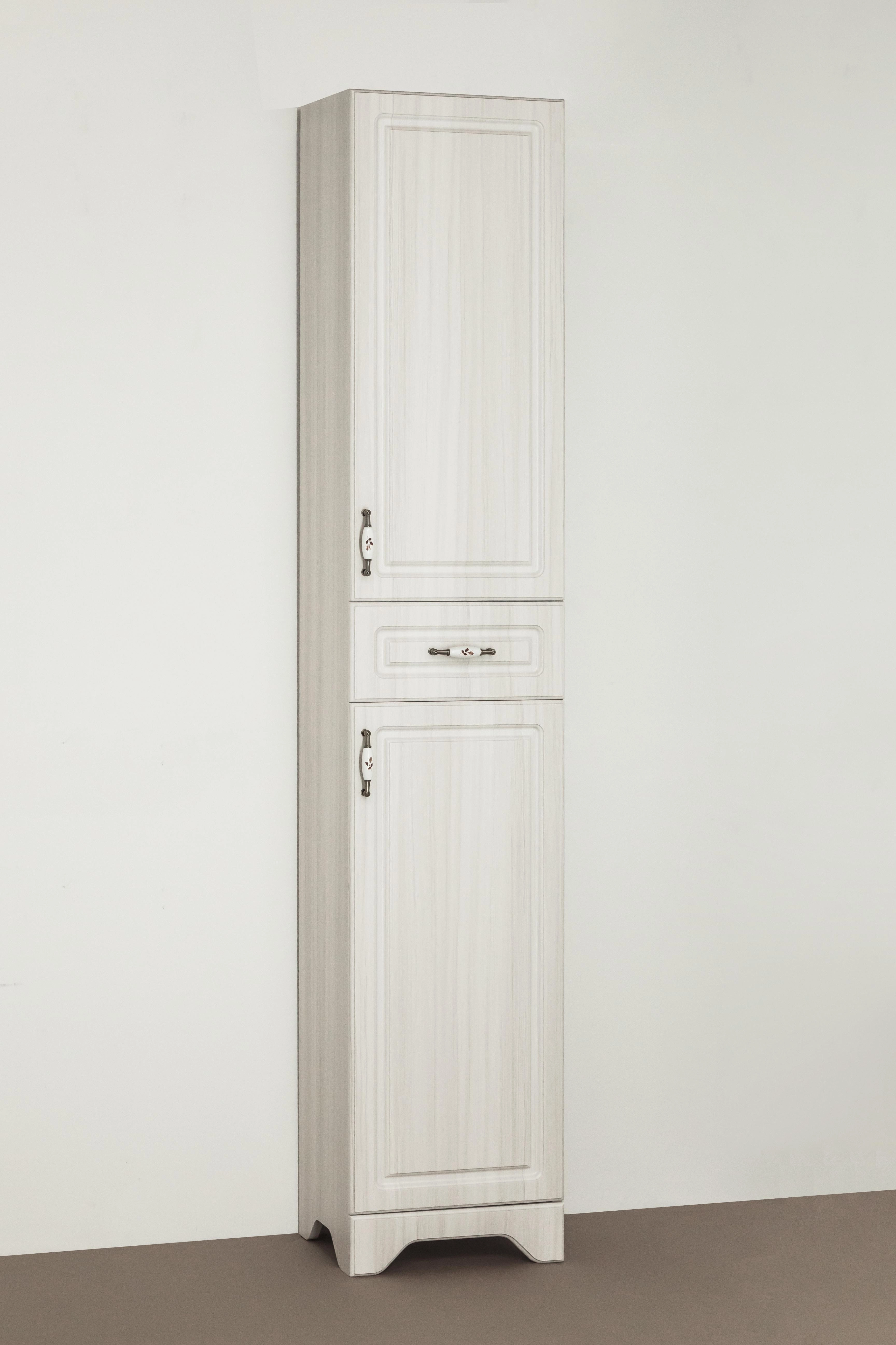 1. Вся мебель изготовлена на оборудовании производства Германии, Австрии, Италии 2. При изготовлении мебели для ванных комнат Style line используют только качественные влагостойкие материалы 3. Корпус изделий изготовлен из влагостойкой ДСП 16 мм, торцы деталей корпуса обработаны кромкой ПВХ толщиной 0,4 мм, фасады мебели изготовлены из МДФ толщиной 16 мм производства завода "Кроношпан" - ведущего российского производителя МДФ и ДСП 3. Все материалы, используемые нами при производстве мебели, имеют сертификаты соответствия 4. Для приклеивания пленки ПВХ на лицевую сторону элементов используется однокомпонентный клей производства Италии, а это значит, что исключена вероятность нарушения консистенции клея, и, следовательно, снижения качества приклейки пленки 5. Для наших изделий мы используем фабричную фурнитуру лучших производителей, покрытую антикоррозийным составом, что позволяет эксплуатировать ее в агрессивной влажной среде ванных комнат 6. Производственный цикл построен таким образом, что вся мебель проходит контроль качества на каждом этапе производства, что сводит к минимуму вероятность возникновения производственного брака Колонна напольная бренда "Style Line" коллекции "Олеандр-2" классического дизайна, декорированная ручками с керамическими вставками "под бронзу" с изящным рисунком. Направляющие полного выдвижения Hettich; сборка изделия с помощью эксцентриковых стяжек Hafele; все материалы полностью влагостойкие