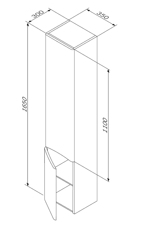 M80CHR0356WG Like, шкаф-колонна, подвесной, правый, 35 см, двери, белый, глянец