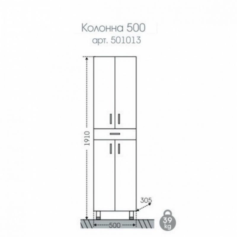 Шкаф-колонна СаНта Стандарт 50 501013 (1 ящик) Комплектация: Ручка - 5 шт, регулируемая ножка - 4 шт, механизм доводчика (плавное закрывание дверей)