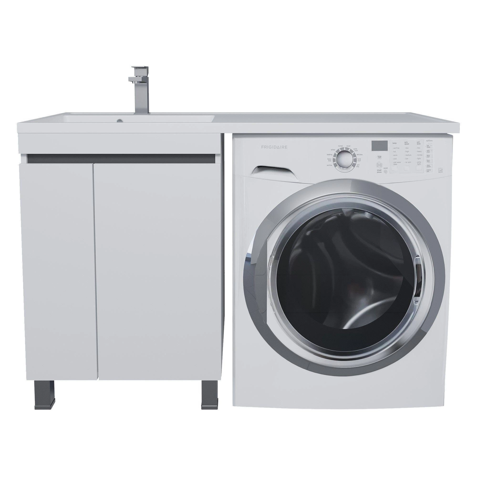Готовый комплект для установки со стиральной машиной состоит из напольной тумбы Uperwood Magenta 60 см (с дверцами) и раковины-столешницы Uperwood Magenta 120 см (чаша слева). Тумба устанавливается с левой стороны. Установка стиральной машины предусмотрена справа под "крыло" раковины.