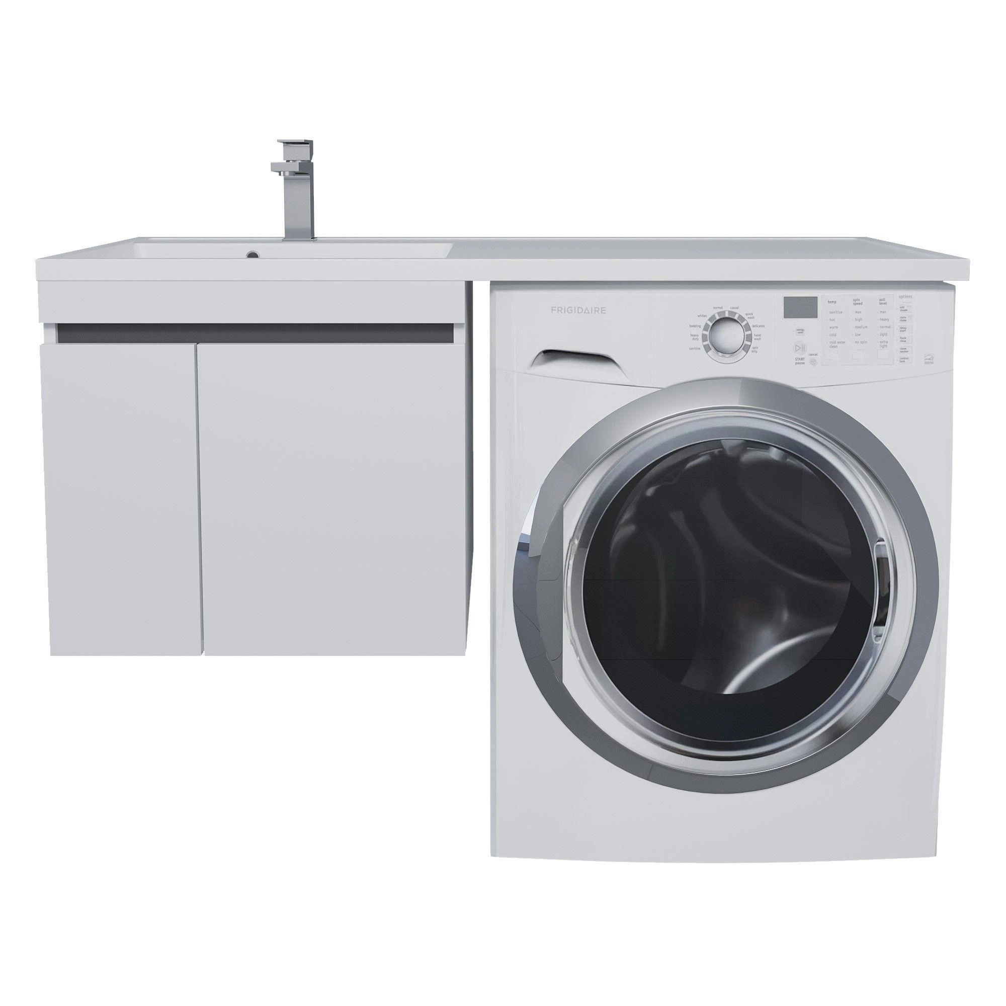 Готовый комплект для установки со стиральной машиной состоит из подвесной тумбы Uperwood Magenta 60 см (с дверцами) и раковины-столешницы Uperwood Magenta 120 см (чаша слева). Тумба устанавливается с левой стороны. Установка стиральной машины предусмотрена справа под "крыло" раковины.