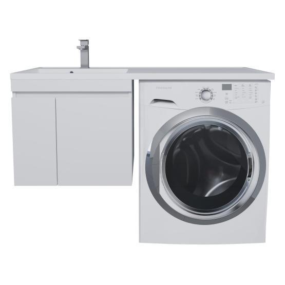 Готовый комплект для установки со стиральной машиной состоит из подвесной тумбы Uperwood Magenta 60 см (с дверцами) и раковины-столешницы Uperwood Magenta 120 см (чаша слева). Тумба устанавливается с левой стороны. Установка стиральной машины предусмотрена справа под "крыло" раковины.