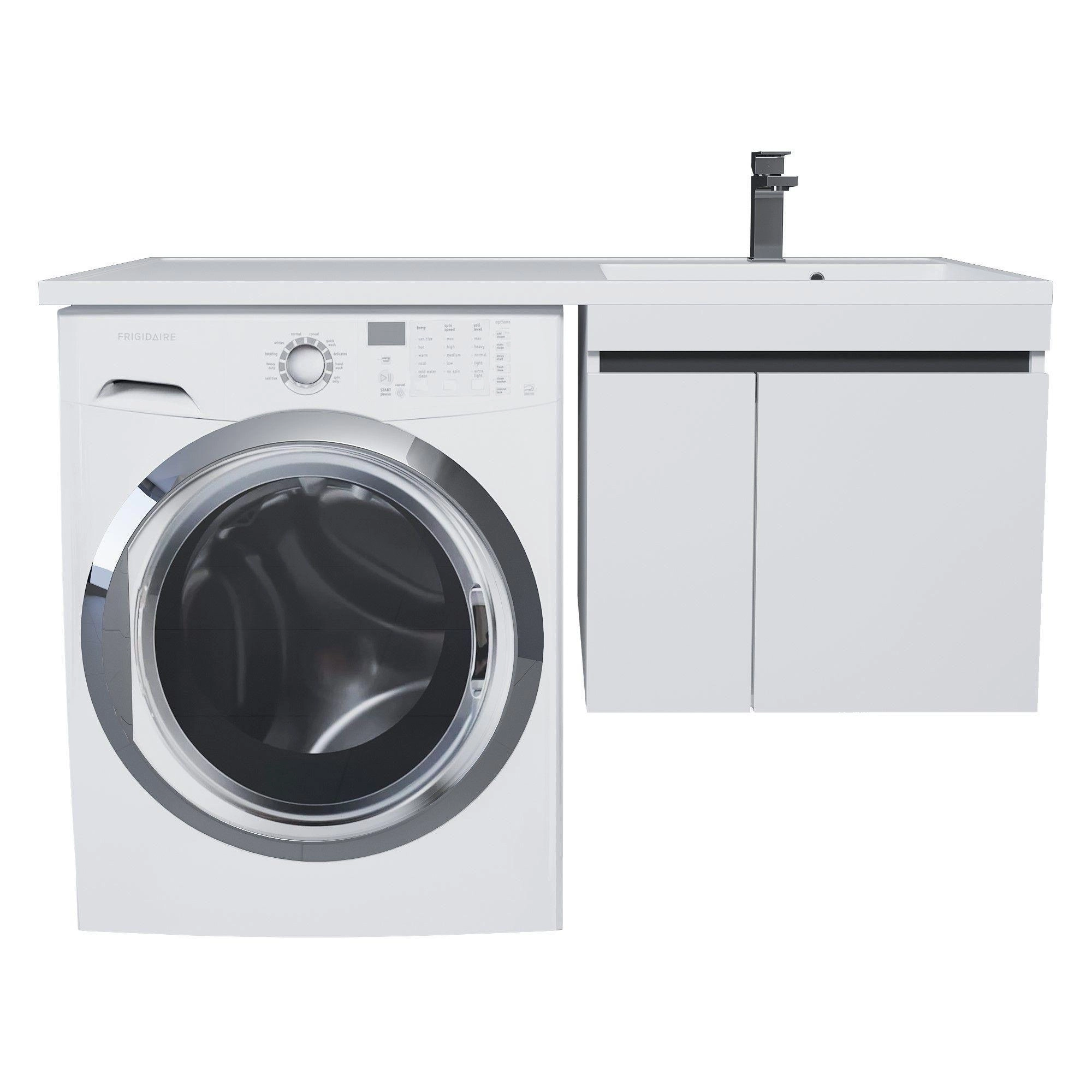 Тумба может быть установлена как с правой, так и с левой стороны относительно стиральной машины в зависимости от положения чаши раковины. "Крыло" раковины Uperwood Magenta располагается над стиральной машиной.