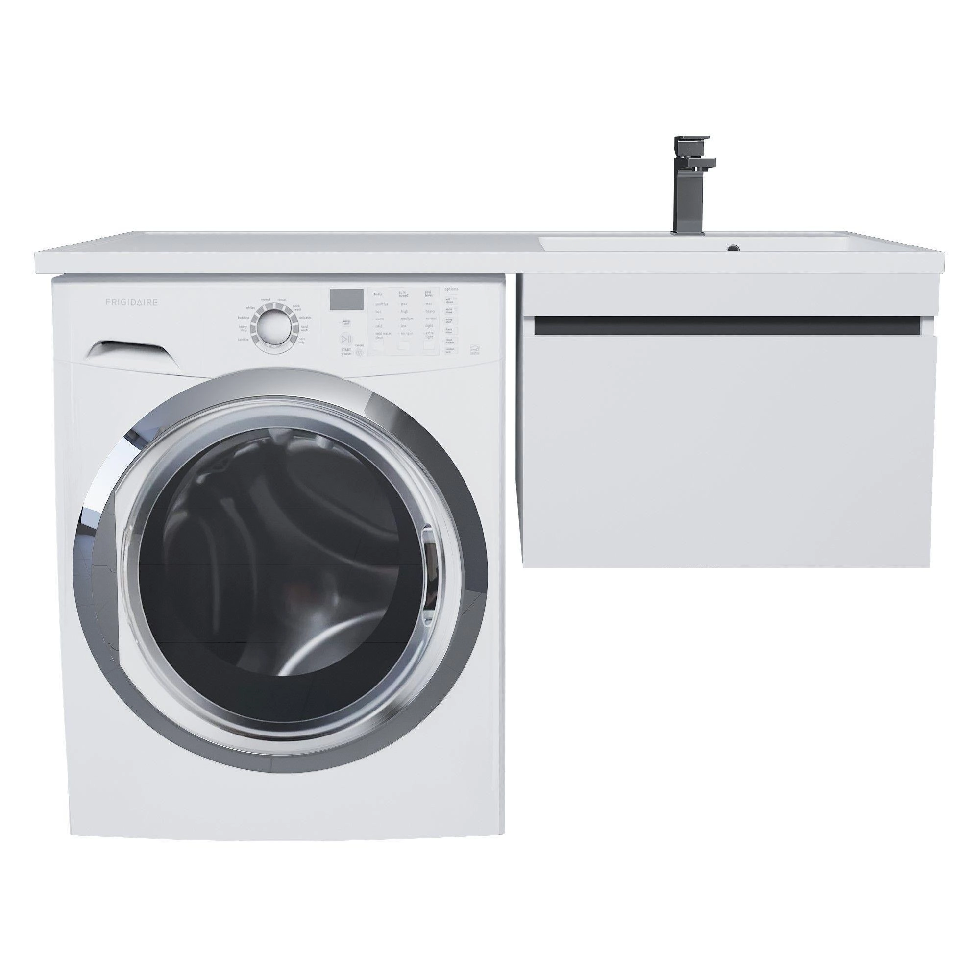 Тумба может быть установлена как с правой, так и с левой стороны относительно стиральной машины в зависимости от положения чаши раковины. "Крыло" раковины Uperwood Magenta располагается над стиральной машиной.