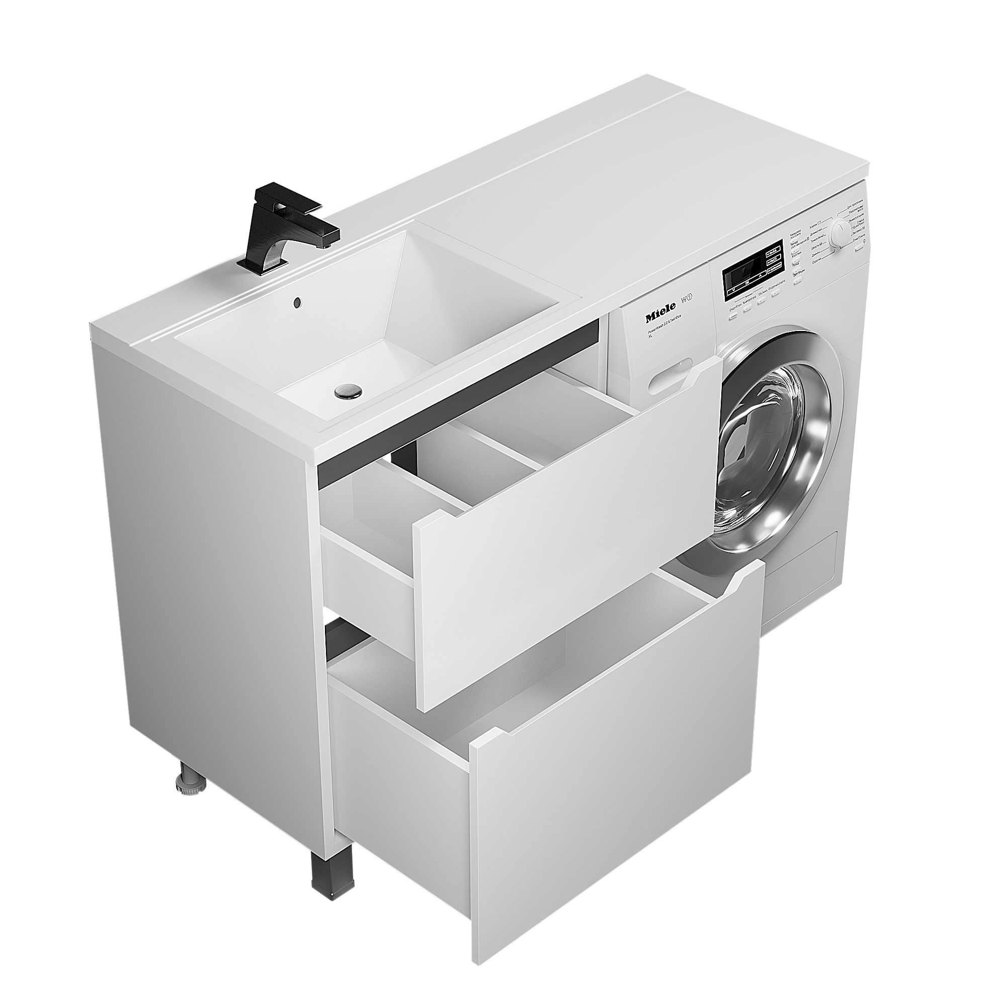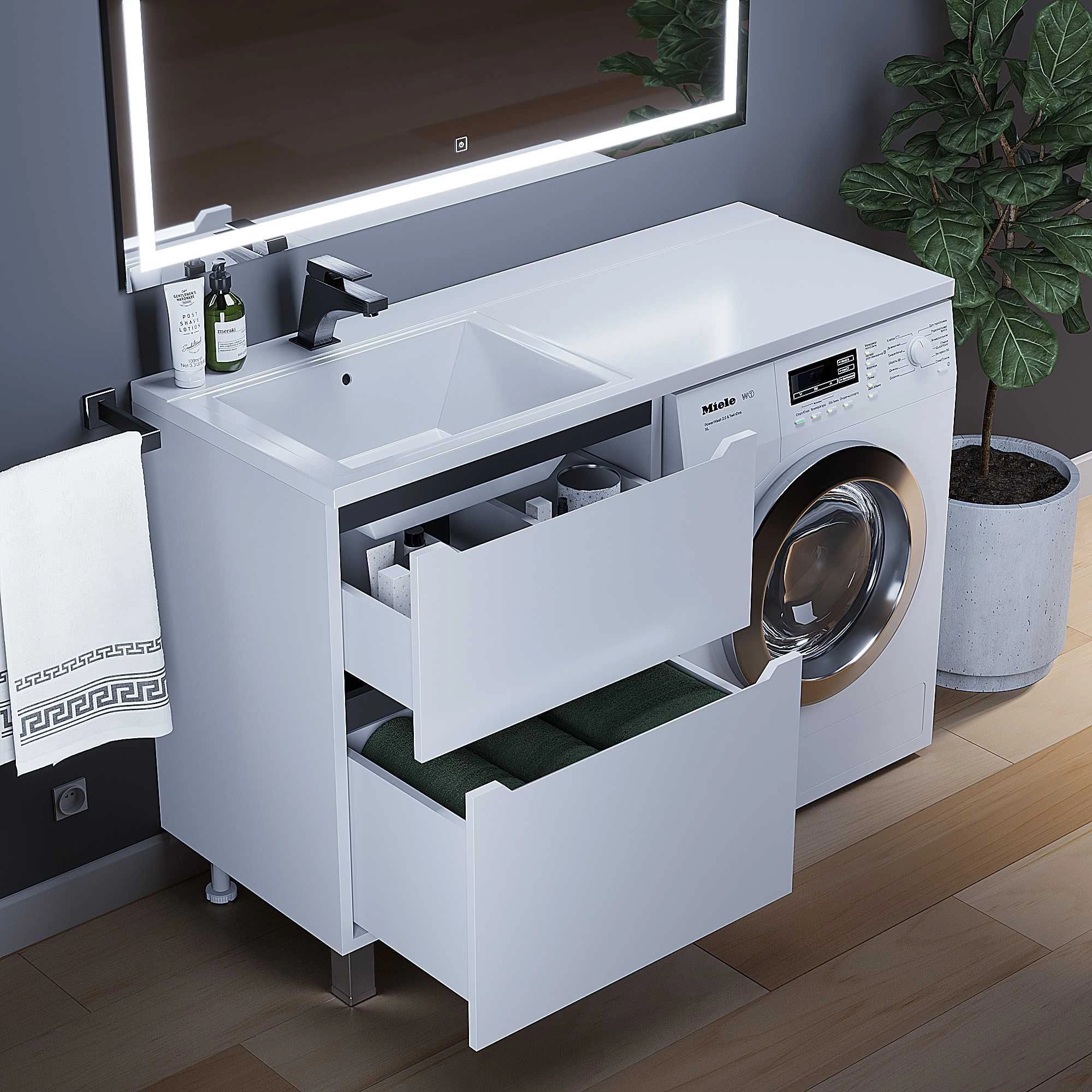 Тумба под раковину для установки со стиральной машиной Uperwood Tanos с выдвижными ящиками представляет собой функциональное, надежное и практичное решение, которое отлично впишется в любой современный дизайн ванной комнаты. Элегантный минималистичный дизайн тумбы дополняет ее безупречная матовая поверхность. Фасад и боковые стенки изделия, выполненные из МДФ, покрыты эмалью Hesse (производство Германия). Толщина МДФ 16 мм. Выдвижные ящики изготовлены из влагостойкой ЛДСП. Ящики оснащены доводчиками. Вся фурнитура и доводчики Hettich, производство Германия. Размерный ряд тумб под раковину Tanos представлен моделями 60 см. Для тумб Tanos подходит раковина Andrea Cosmos или раковина Andrea Bruks шириной 120 см. Под "крыло" раковины устанавливается стиральная машина. Тумба поставляется в собранном виде, в комплект входят ножки для напольного монтажа и крепеж.тумба в сборе - 1 шт., фурнитура, ножки, крепление