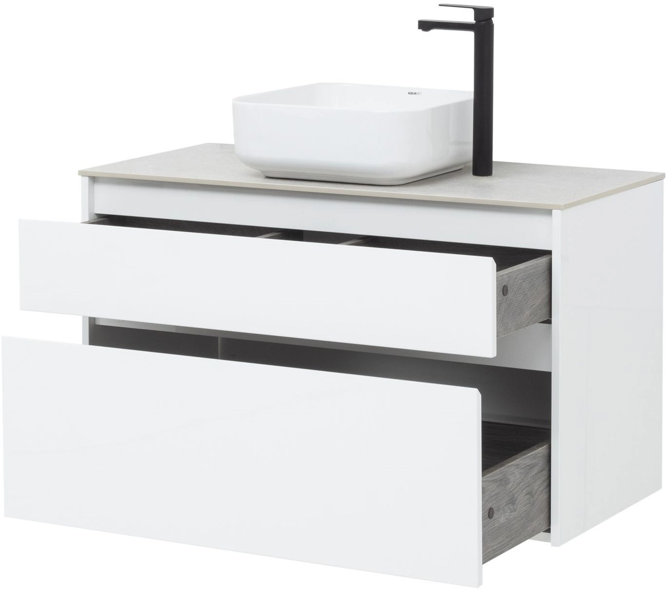 Тумба под раковину Aquanet Nova Lite 100 белоснежного цвета из влагостойкой ламинированной древесно-стружечной плиты выглядит нарядно. Подвесной монтаж придает визуальную легкость тумбе шириной 100 см. Она оборудована двумя выдвижными ящиками. Ящики довольно вместительные и позволяют разместить все необходимое. Комплектуются направляющими немецкого производства Hettich Quadro, оснащенными доводчиками. Фасады выполнены с декоративной интегрированной ручкой, не имеющей острых краев и внутренних углов, что обеспечивает удобство эксплуатации и легкий уход за мебелью.