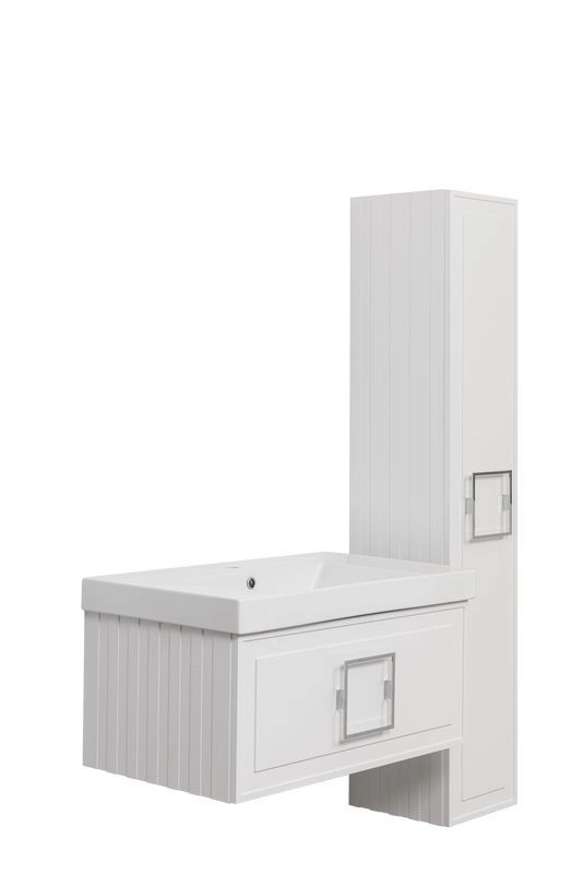 При комплектации изделия можно выбрать столешницу, раковину. Состав комплекта : Тумба, ручка, сифон Prevex, набор для монтажа ( монтажная планка, дюбеля, саморезы)
