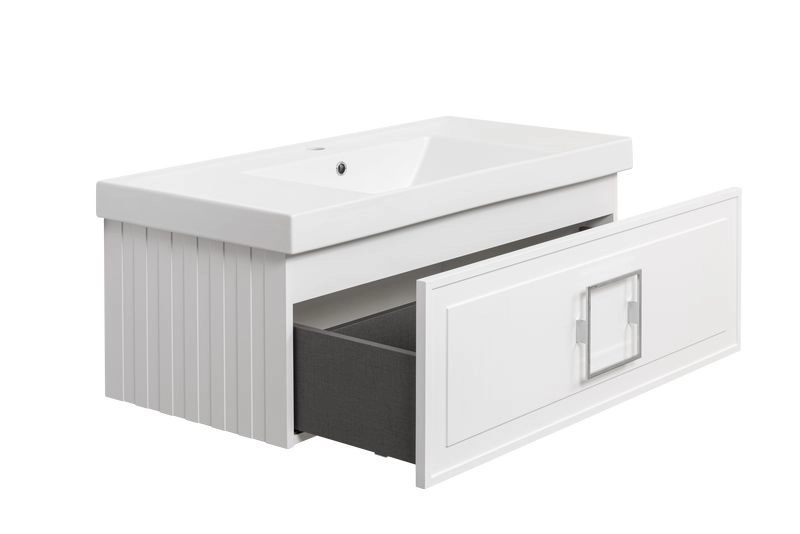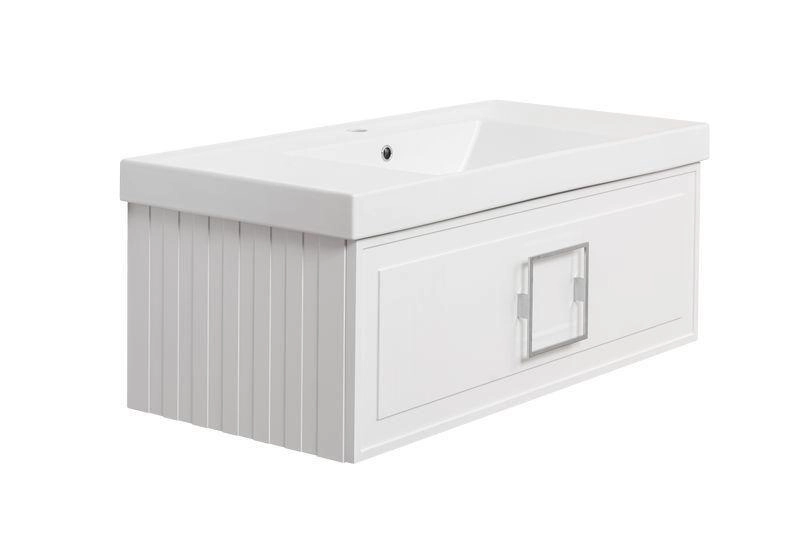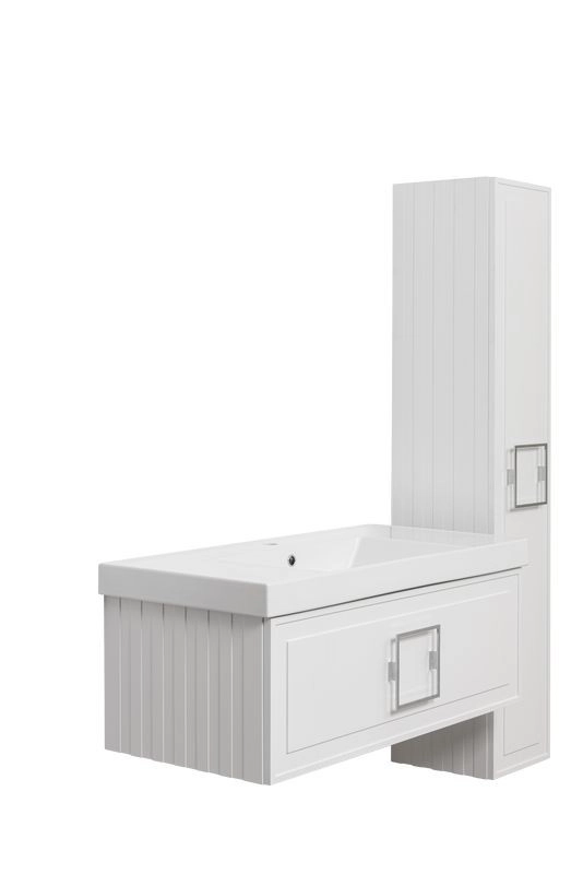 При комплектации изделия можно выбрать столешницу, раковину. Состав комплекта : Тумба, ручка, сифон Prevex, набор для монтажа ( монтажная планка, дюбеля, саморезы)