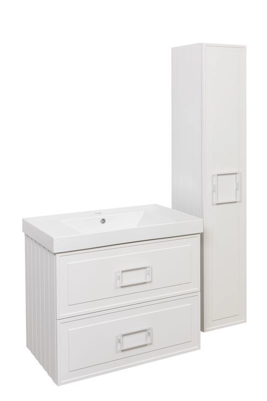 При комплектации изделия можно выбрать столешницу, раковину. Состав комплекта : Тумба, ручки, сифон Prevex, набор для монтажа ( монтажная планка, дюбеля, саморезы)