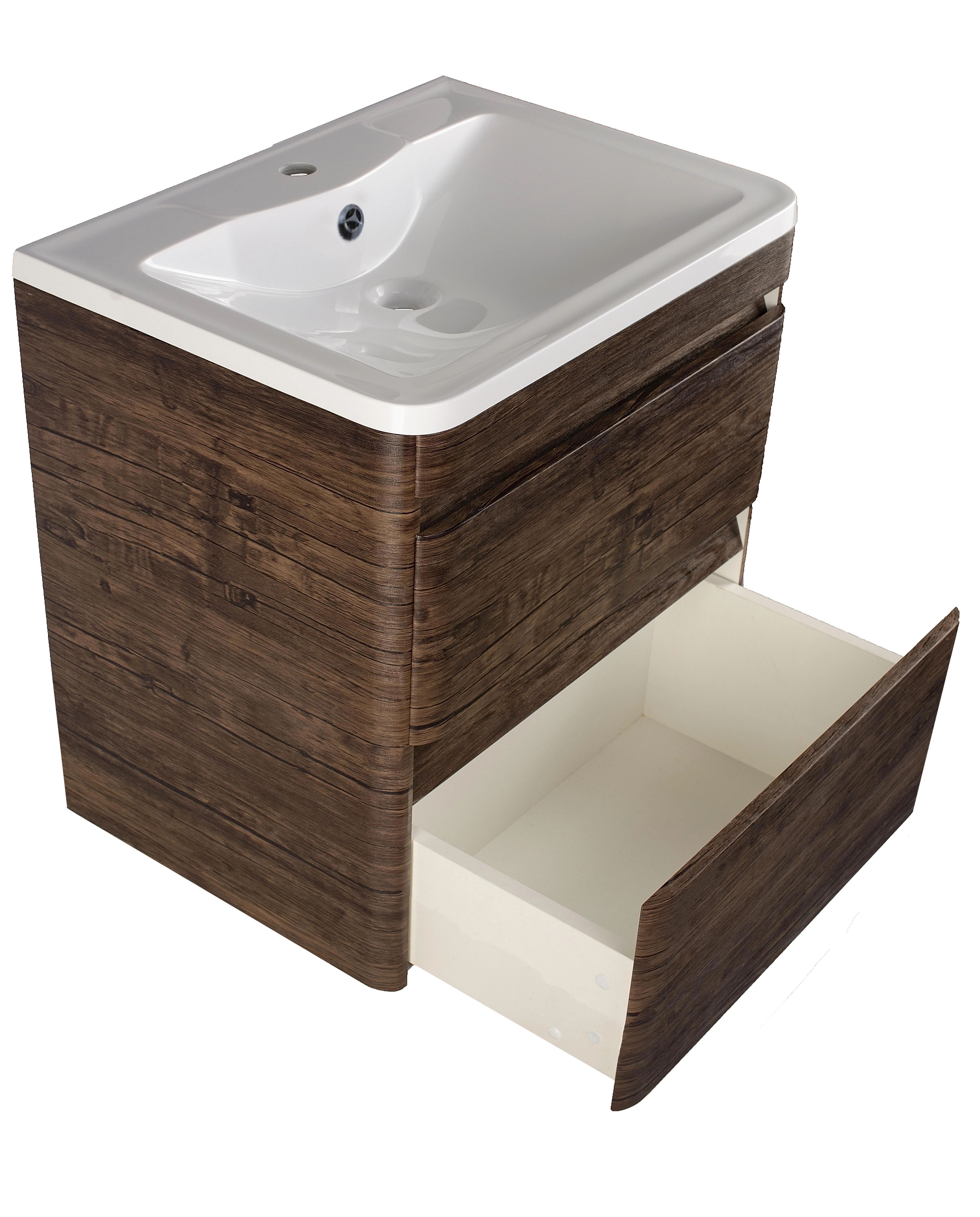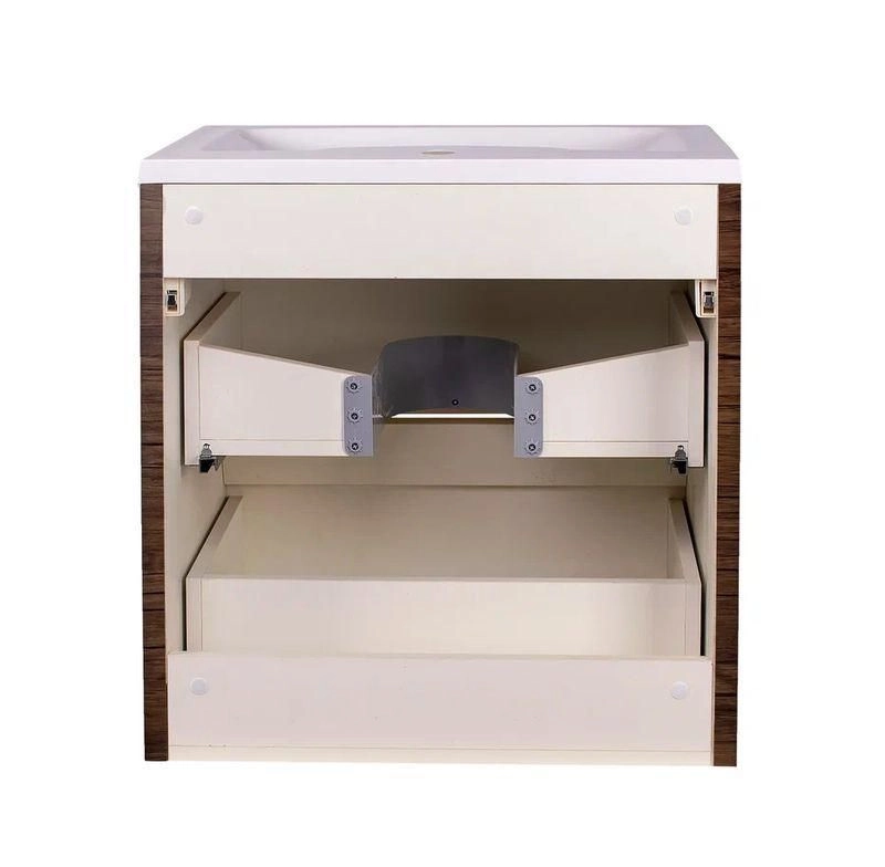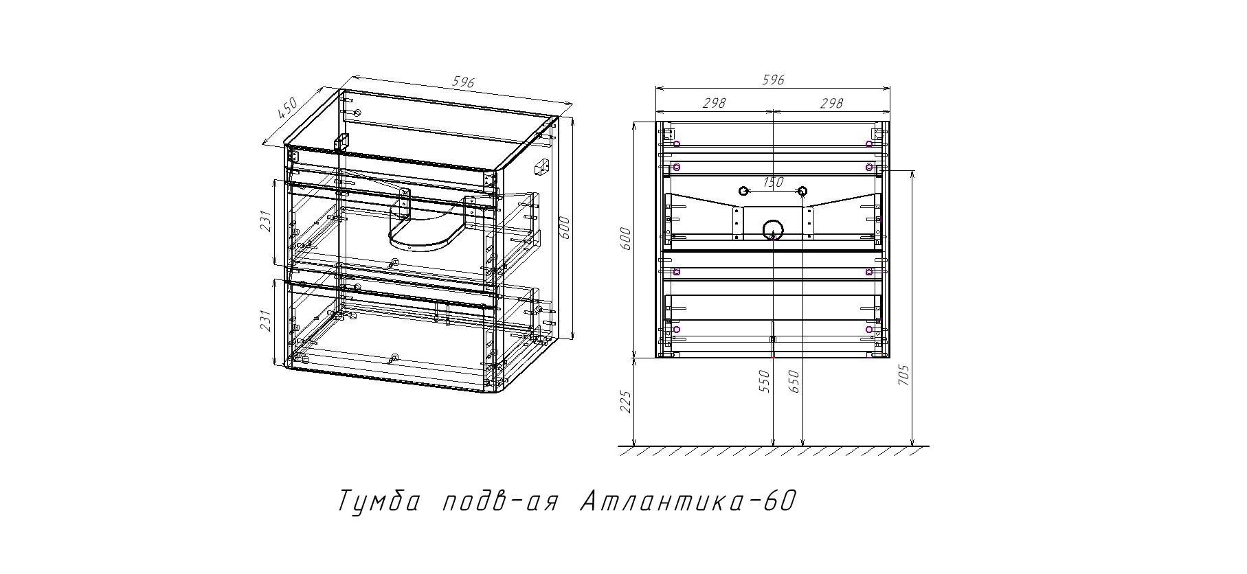 Фасады изготавливаются из МДФ в пленке толщиной 18 мм, покрытым пленкой ПВХ. Двери оснащаются металлическими петлями с доводчиками с механизмом плавного закрывания. Полочки внутри подвесного шкафа Атлантика полностью вынимаются.
