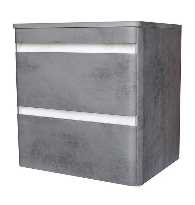Тумба подвесная Атлантика 70 — это современный и стильный элемент мебели для ванной комнаты, выполненный в темном бетоне. Она оснащена двумя удобными ящиками и столешницей из МДФ, что делает ее функциональной и эстетически привлекательной. Изготовлена из