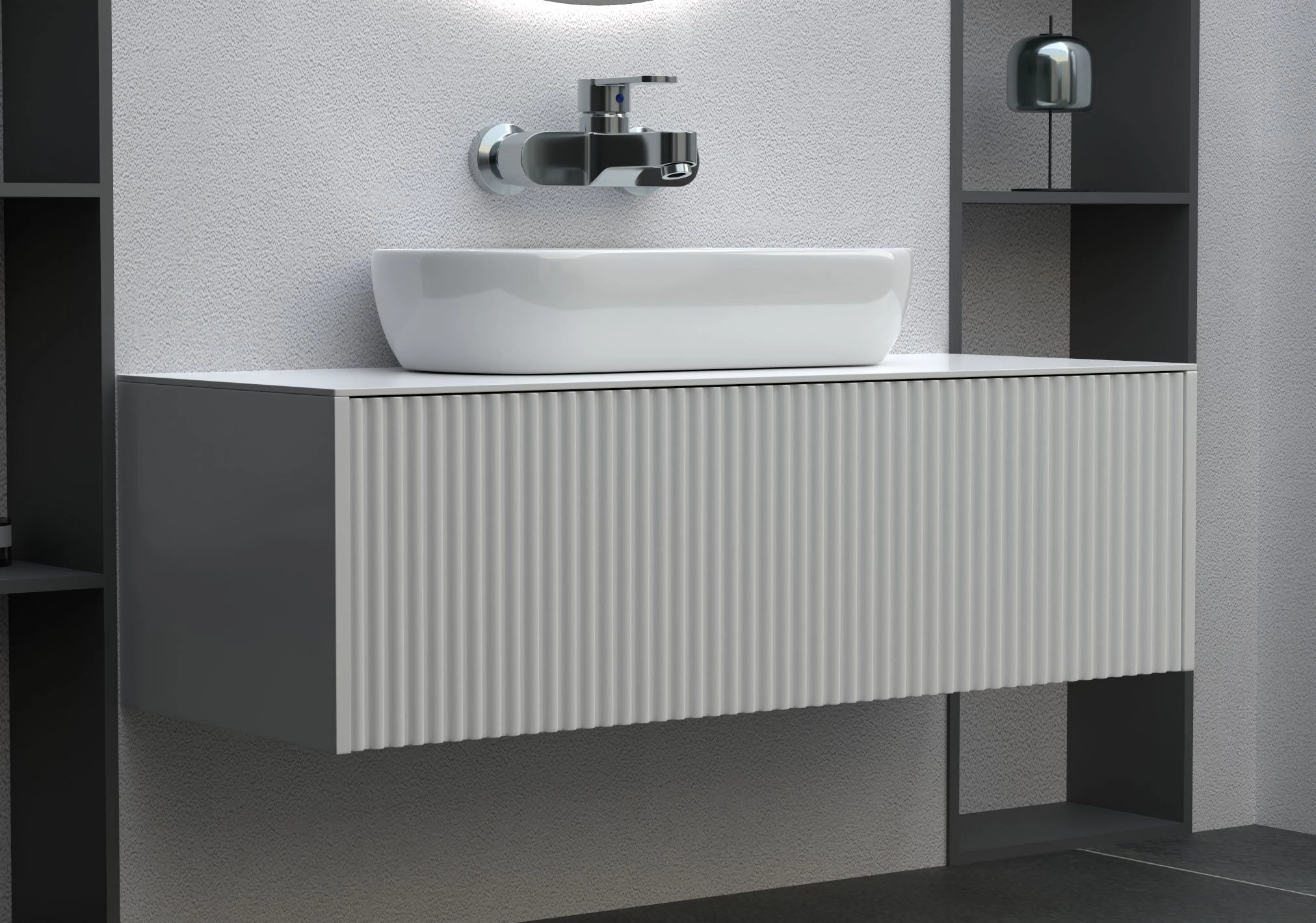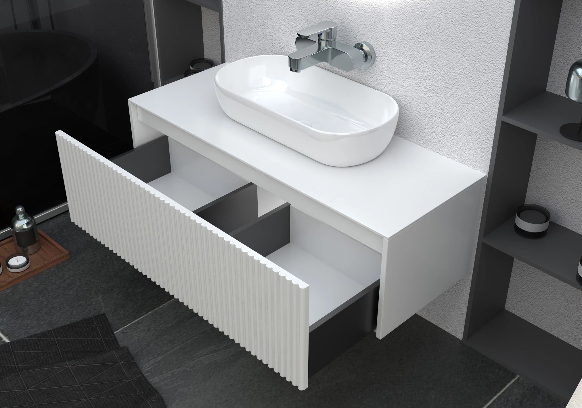 Подвесная тумба с одним ящиком оснащены системами полного выдвижения и плавного закрывания Push to open.