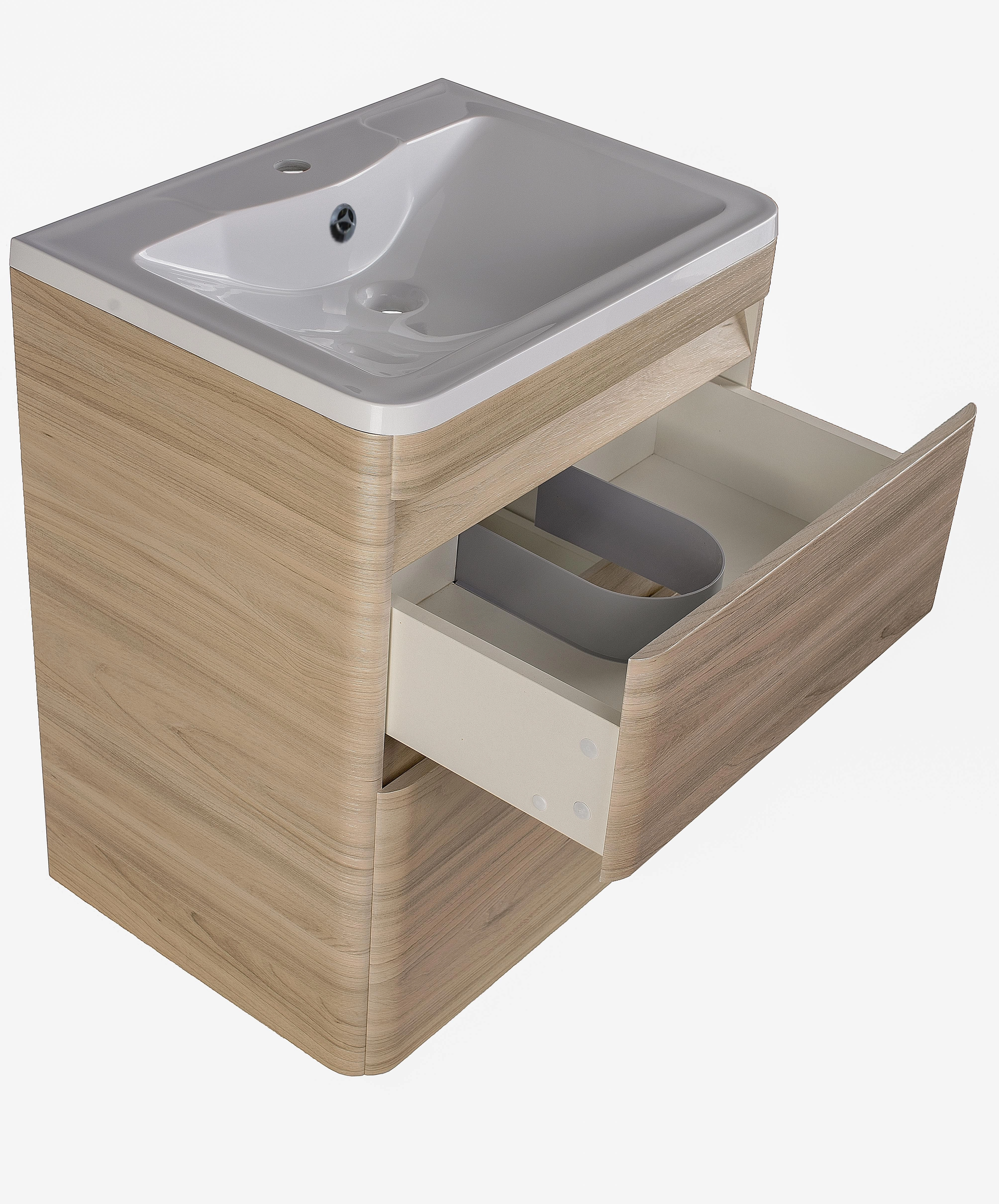 Комппектация тумбы возможна накладной раковиной и столешницей с накладной раковиной, к вашему выбору предоставлены 3 цвета столешниц.
