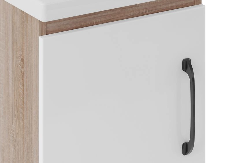 Корпус мебели Адель изготовлен из влагостойкого ЛДСП структурно имитирующего натуральное белое дерево. Фасады мебели изготовлены из МДФ и покрыты глянцевой пленкой. Дверка плавного закрывания.