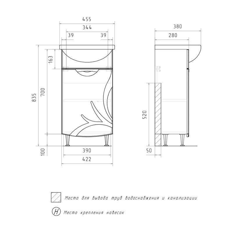 —Тумба для ванной Volna Adel 45.1D напольная (Азов) раковина отдельно