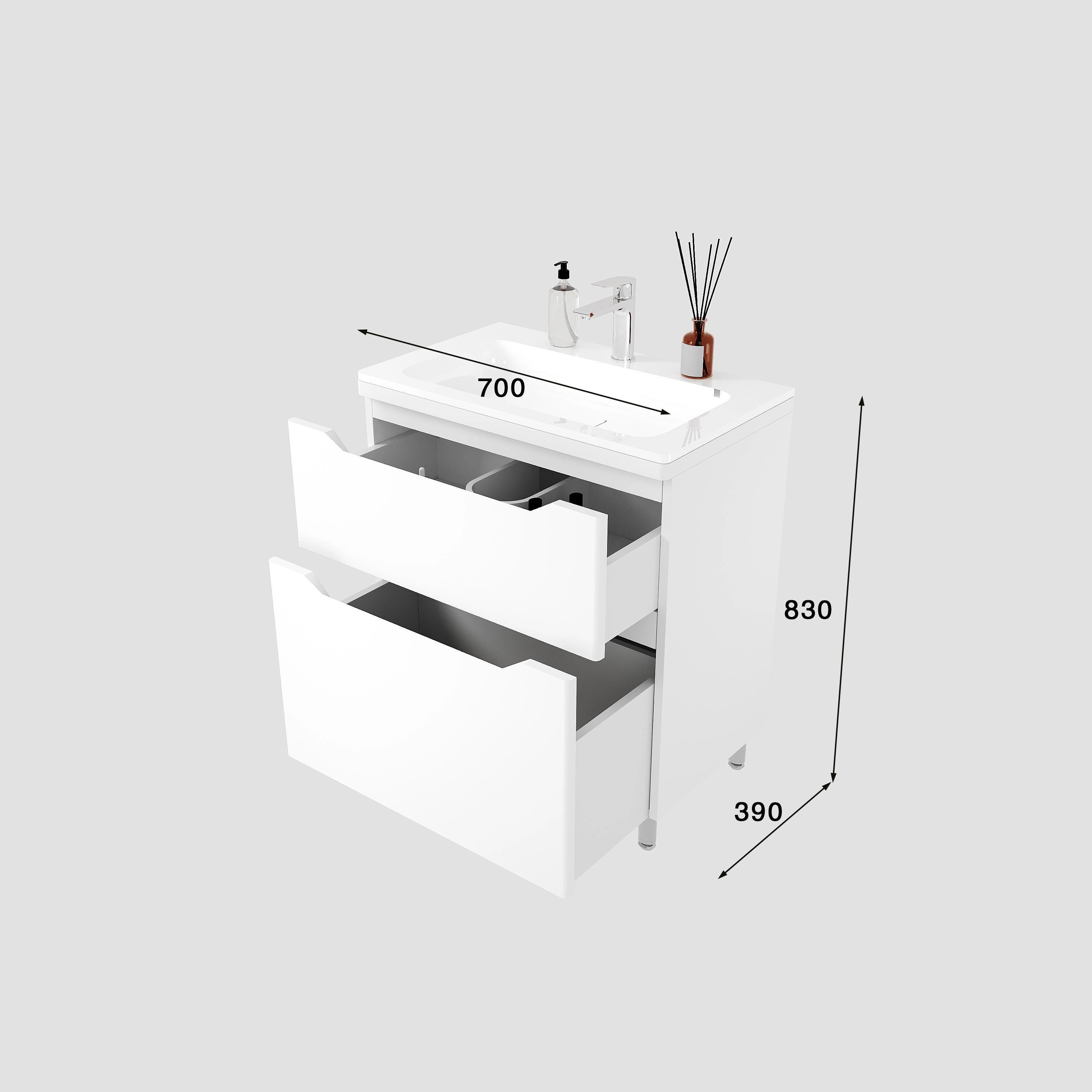 Тумба напольная Style Line Марелла 70 (2 ящ.) Люкс антискрейтч белый матовый, PLUS