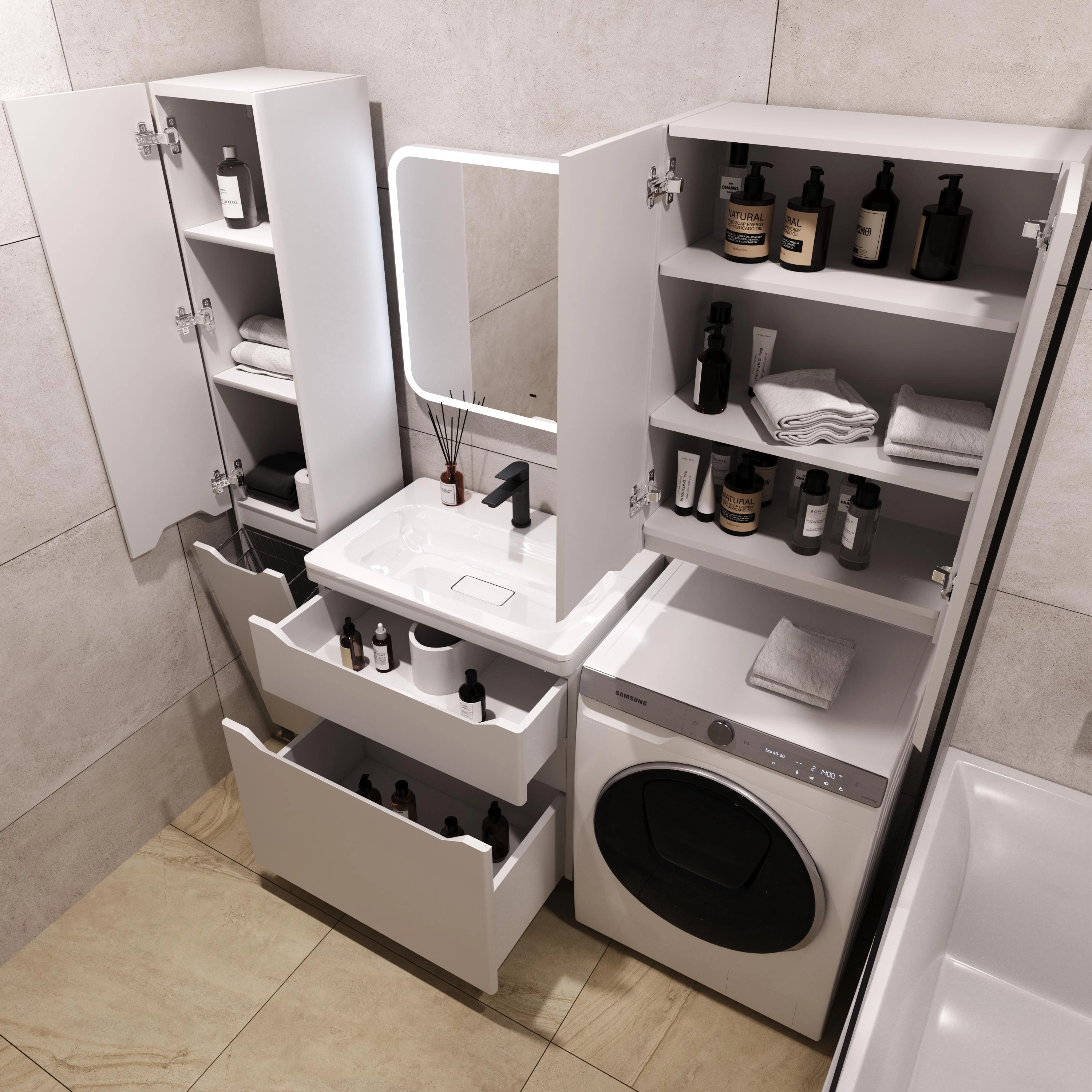 Тумба напольная Марелла 70 — это стильное и современное решение для ванной комнаты, которое сочетает в себе высокое качество, функциональность и элегантный дизайн. Выполненная в белом матовом цвете, она придаёт помещению свежий и светлый вид, визуально ра