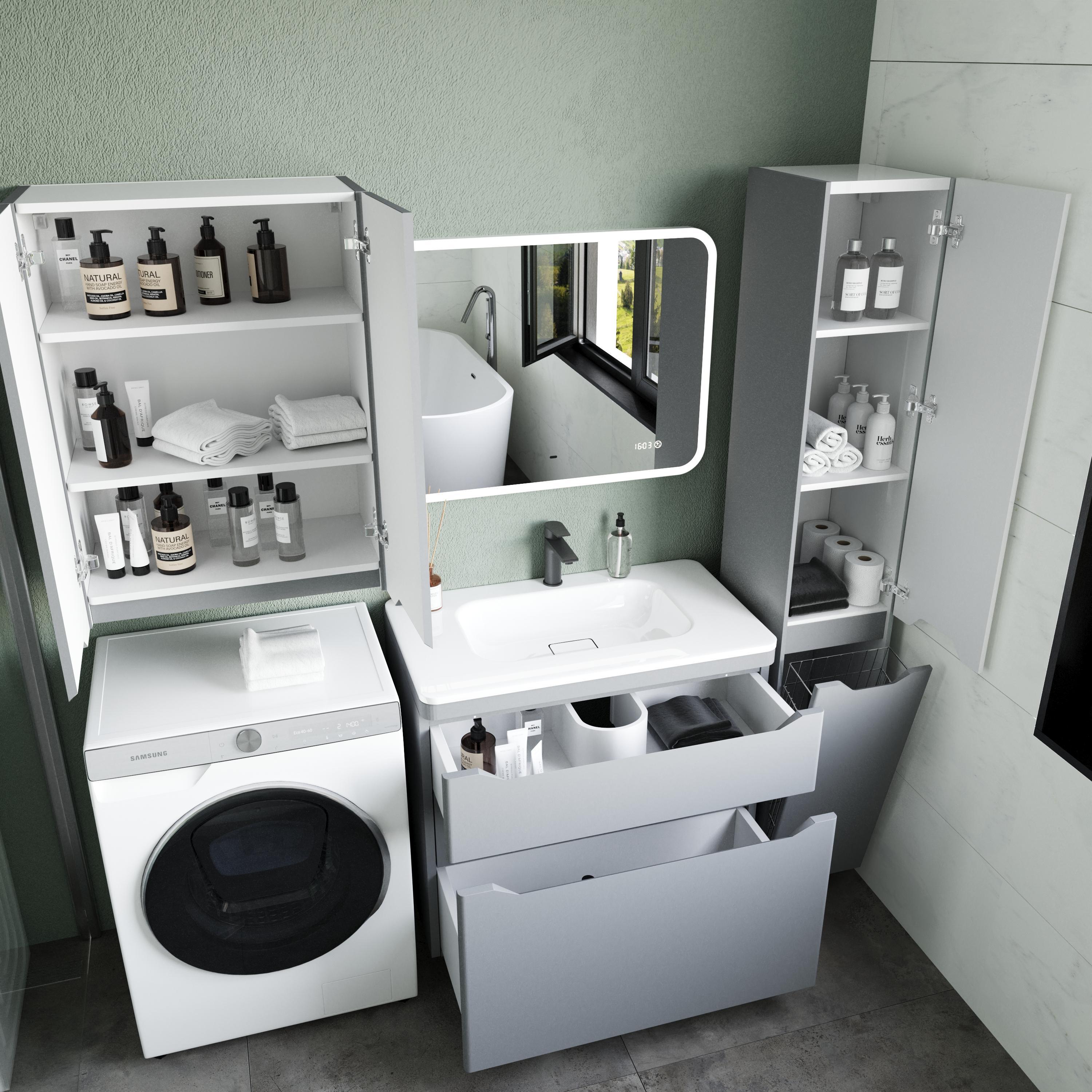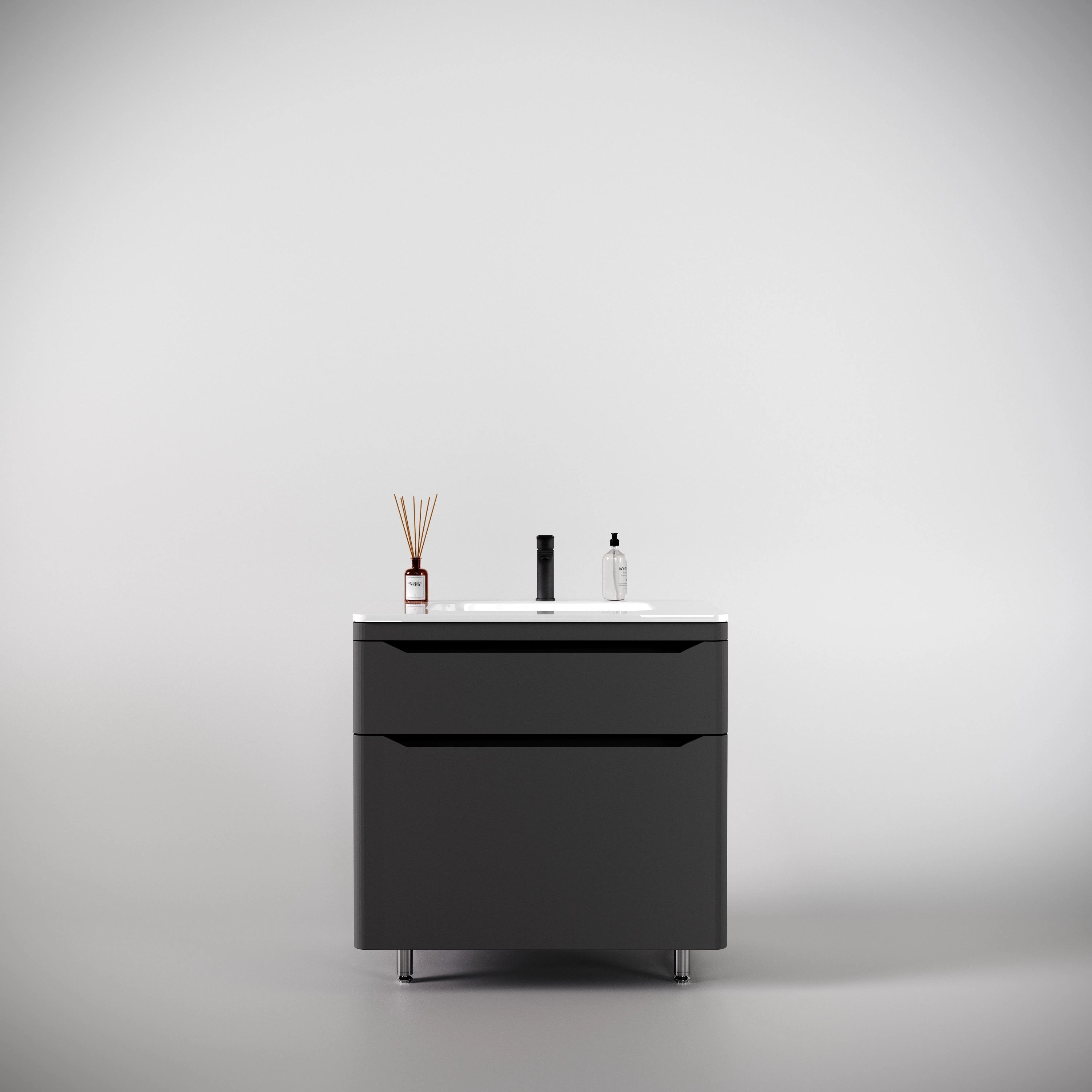 Тумба напольная Марелла 80 — это стильное и современное решение для ванной комнаты, которое сочетает в себе высокое качество, функциональность и элегантный дизайн. Выполненная в сером цвете, она придаёт помещению свежий и светлый вид, визуально расширяя п