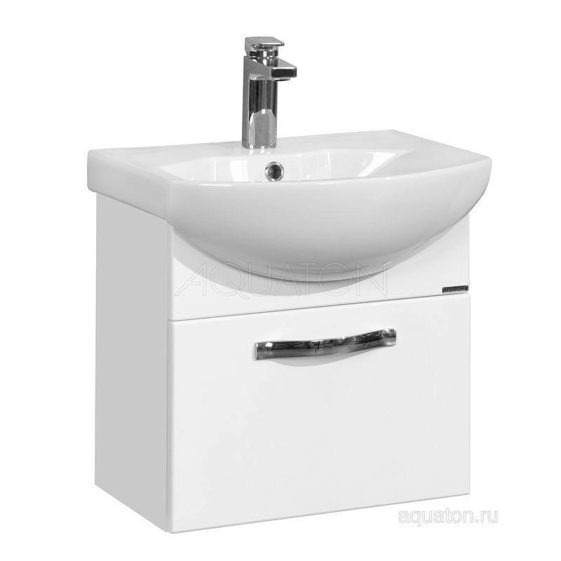 Aquaton 1A140301AA010 В тумбе за фасадом расположен ящик из декоративной влагостойкой ДСП со вставками, организующими его пространство. Ящик установлен на направляющие полного выдвижения немецкого производителя фурнитуры BLUM, благодаря чему им удобно пользоваться даже с керамической раковиной, выступающей вперед. Зеркало выполнено в популярном стиле минимализма, не занимает многоместа и при желании может быть укомплектовано полкой Ария 50 см. Комплектация: ручки - 1 ящики в декоративной отделке - 1 усиленные навесы - 2 Габариты ш*в*г (мм) 470*442*309