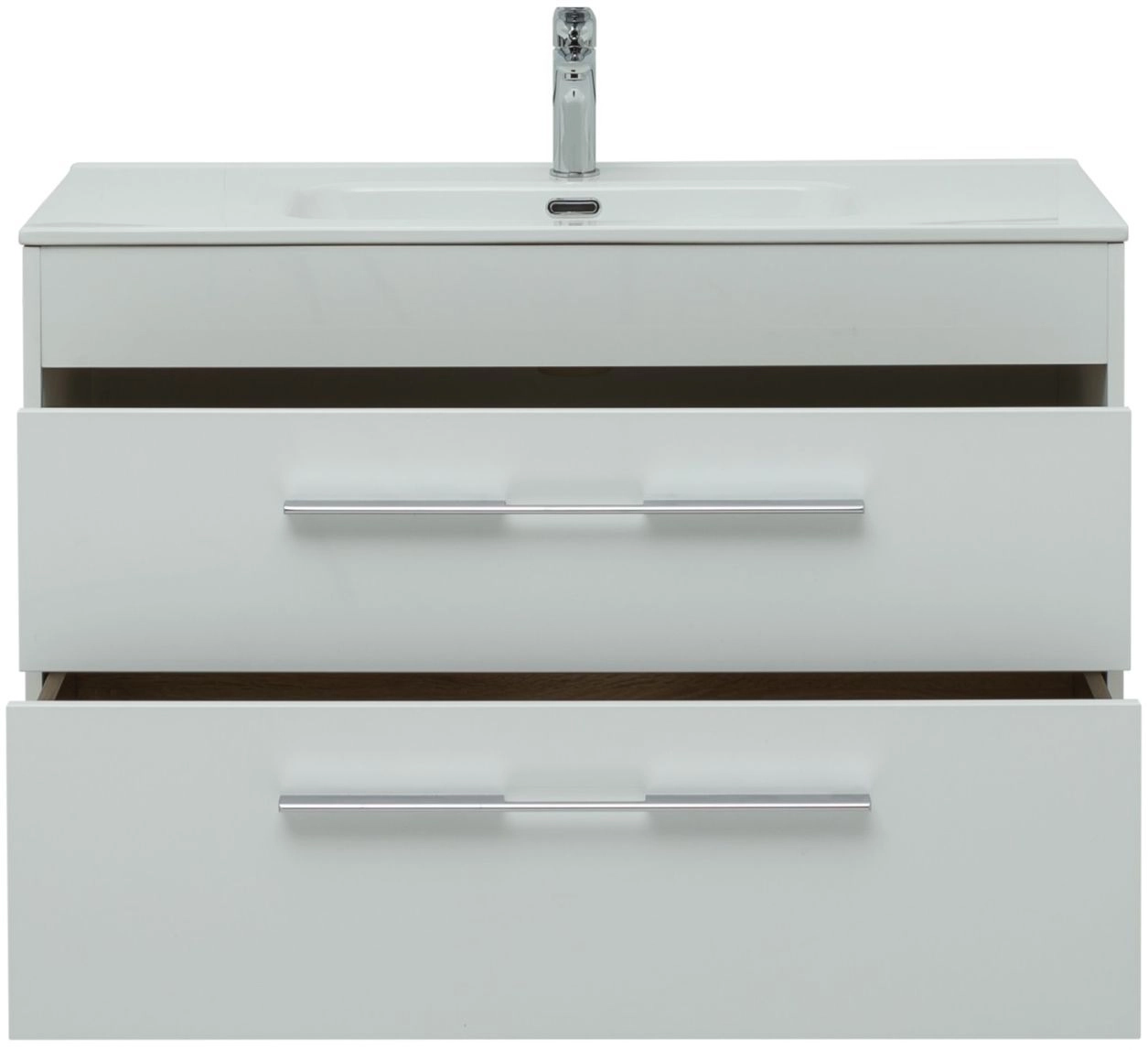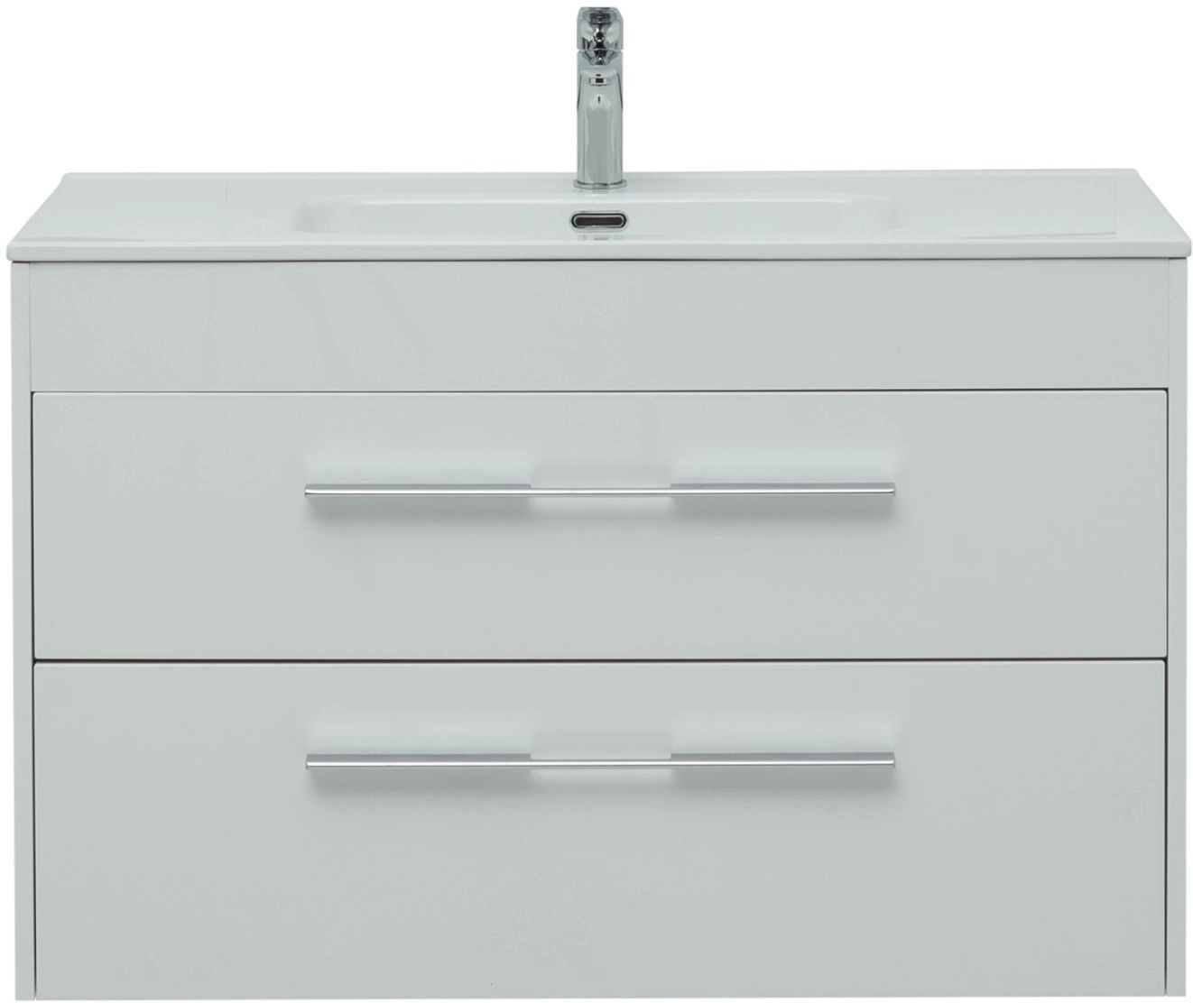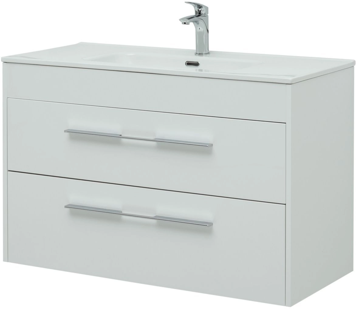 Тумба под раковину Aquanet Августа шириной 100 см — ультрамодное решение для современных санузлов. Универсальная глянцевая модель в белом исполнением с двумя выдвижными ящиками поможет вам организовать пространство под раковиной. Подвесная конструкция крепится к стене, оставляя пространство под собой для уборки. Фасад тумбы изготовлен из МДФ, а корпус — из влагостойкого ЛДСП. Производители позаботились о том, чтобы организация пространства внутри ящичков соответствовало сливной конструкции, соединяющей раковину с системой водоотведения. Однако это нисколько не помешает вам хранить внутри предметы бытовой химии и косметику. На тумбочку нанесено ламинированное покрытие, а фурнитура выполнена в цвете «хром».