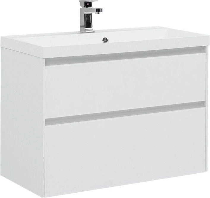 Тумба под раковину Aquanet «Гласс» 90 белого цвета. Мебель дополнена двумя широкими и вместительными ящиками. Для их открывания применяют скрытые рукоятки, которые придают поверхности эстетичный внешний вид и не цепляются за одежду. Корпус изготовлен из МДФ. Специальное покрытие позволяет вести эксплуатацию в условиях высокой влажности. Размеры — 890х445х610 мм. На прямоугольной раковине «Орлеан» 90 размещено отверстие под кран. Основной материал — литьевой мрамор, отличающийся гладкостью и гипоаллергенностью. Он не впитывает запахи и сохраняет свою белизну в течение всего срока службы. Рекомендуем составить комплект из пенала «Гласс» 35, зеркало-шкафа «Латина» 90. Сверху можно разместить Aquanet WT-400 LED. Для напольной установки используют ножки (артикул 00181454), для крепления к стене — дюбели.