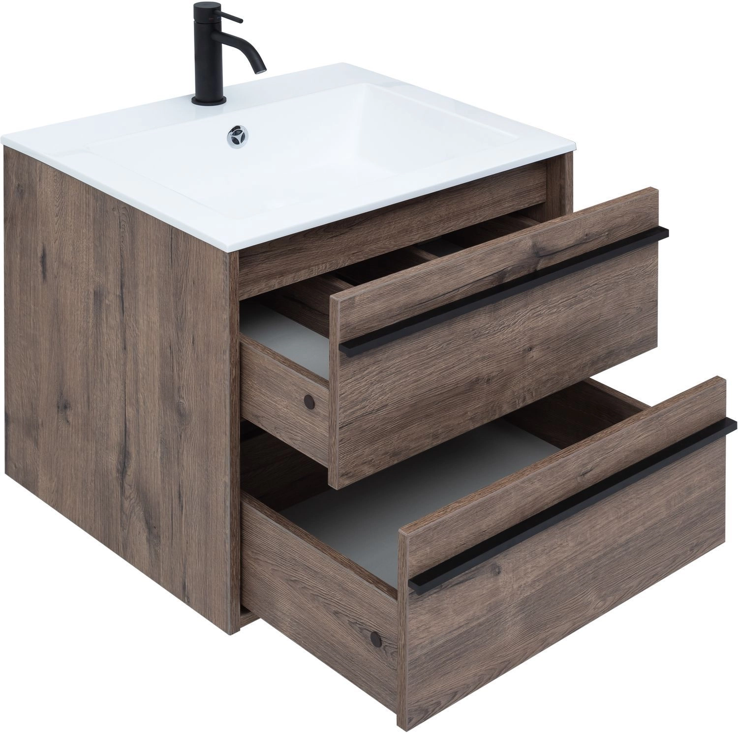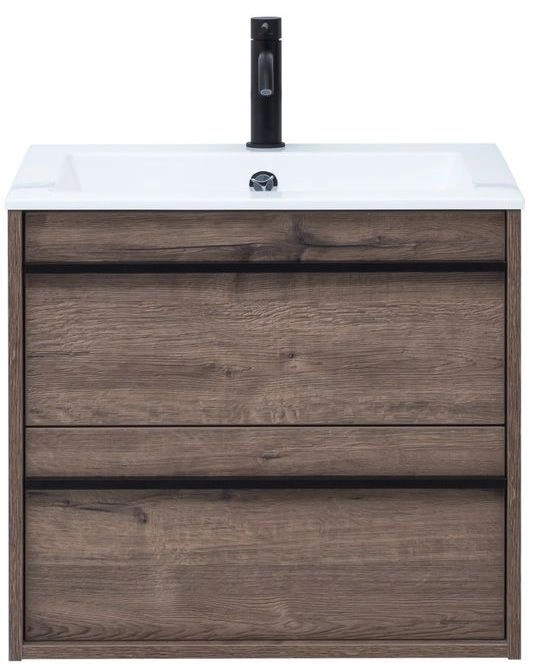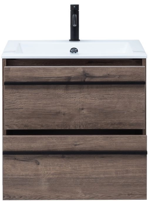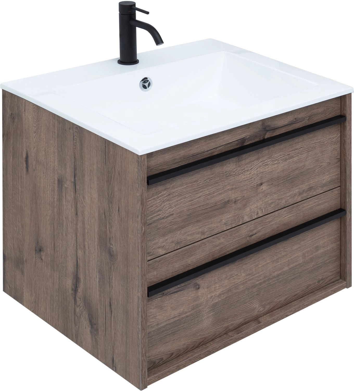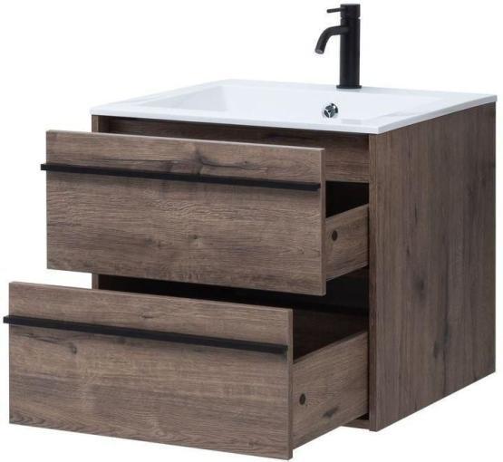 Тумба под раковину Aquanet Lino 60 в цвете "дуб веллингтон" - яркий пример мебели в эко-стиле. Яркая, приятная глазу цветовая гамма плюс текстурная поверхность, максимально приближенная по тактильным ощущениям к натуральной древесной поверхности, является визитной карточкой коллекции. У нее удобная зона хранения: два выдвижных ящика, оборудованных доводчиками, словно утоплены внутрь корпуса. Тонкие изящные ручки во всю ширину ящиков. Именно они находятся в одной плоскости с боковыми стенками. Выглядит стильно. К тому же, безопасно, так как нет выступающих деталей. Кстати, ручки отечественного производства. Сделаны из алюминия, чтобы исключить возможность коррозии, по заказу Aquanet специально для этой коллекции. Сверху на них нанесено эмалевое покрытие. Корпус и фасады тумбы шириной 60 см – из влагостойкого ЛДСП. Сверху установлена раковина «Электра» из литьевого мрамора. У нее максимально глубокая и объемная чаша, но все внутренние детали скруглены, так что приведение ее в порядок не составит труда, так как грязь не будет скапливаться в уголках.