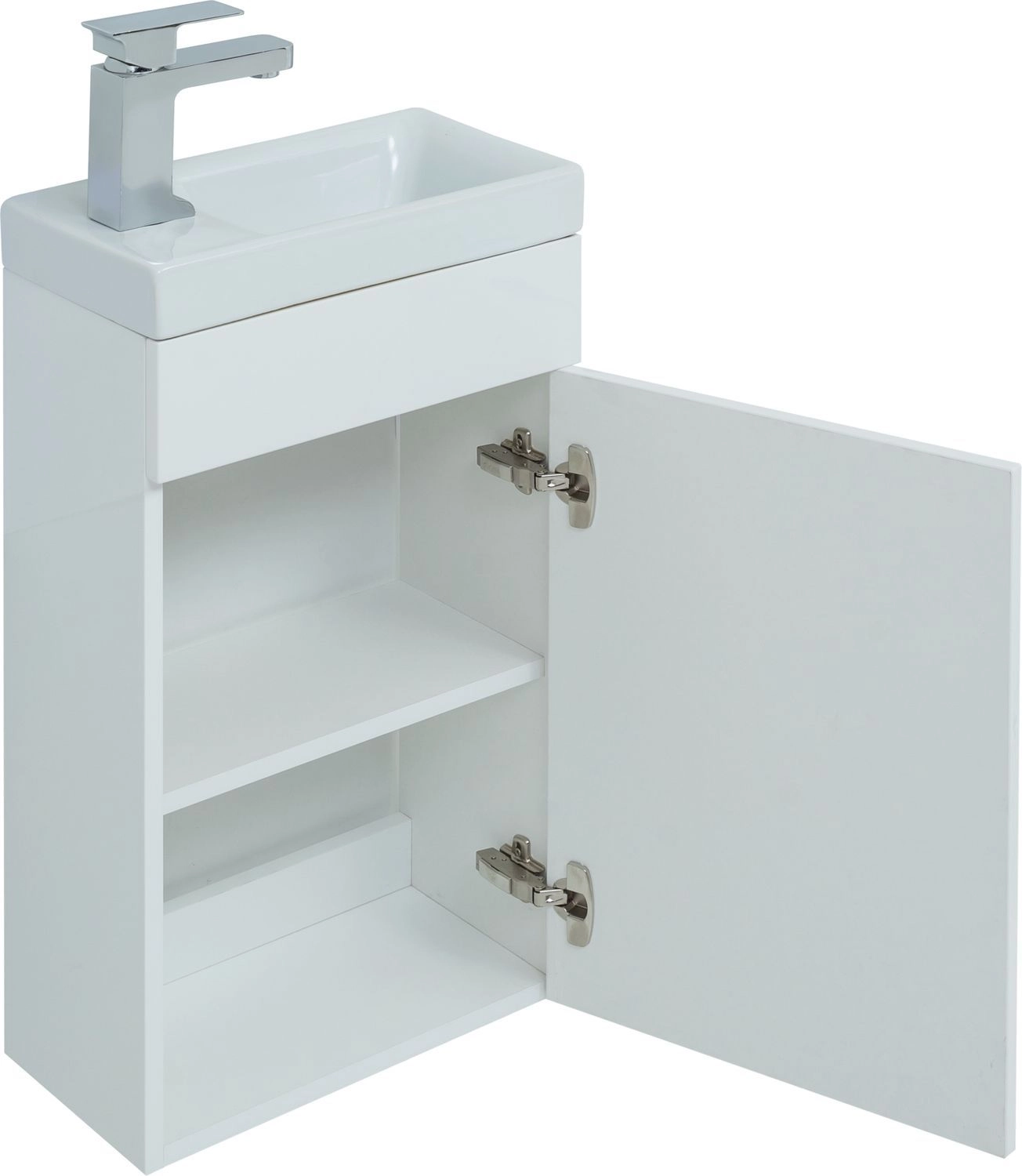 Тумба под раковину Aquanet «Нота» 40 L (Moduo) — компактная модель белого цвета с левосторонней ориентацией, которая подойдет для обустройства небольшой ванной комнаты или санузла. Монтаж настенный, что облегчает уборку напольного покрытия. Корпус сделан из устойчивой к воздействию влаги ЛДСП, фасады — из МДФ. За распашной дверцей, дополненной серебристой ручкой, располагается одна полка для хранения. На тумбу устанавливают раковину Cersanit Moduo 40 S-UM-MOD40/1. Корпус изготовлен из белоснежного фарфора, не вызывающего сложностей при уходе. Материал экологичен и безопасен. Габариты — 400х220х155 мм. Для очищения поверхностей используют влажную ткань и средства бытовой химии, не содержащие абразивные частицы. Рекомендуем дополнить раковину хромированным смесителем от производителя Allen Brau из коллекции Infinity (артикул 5.21001-00).