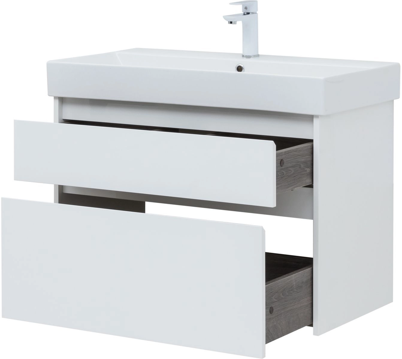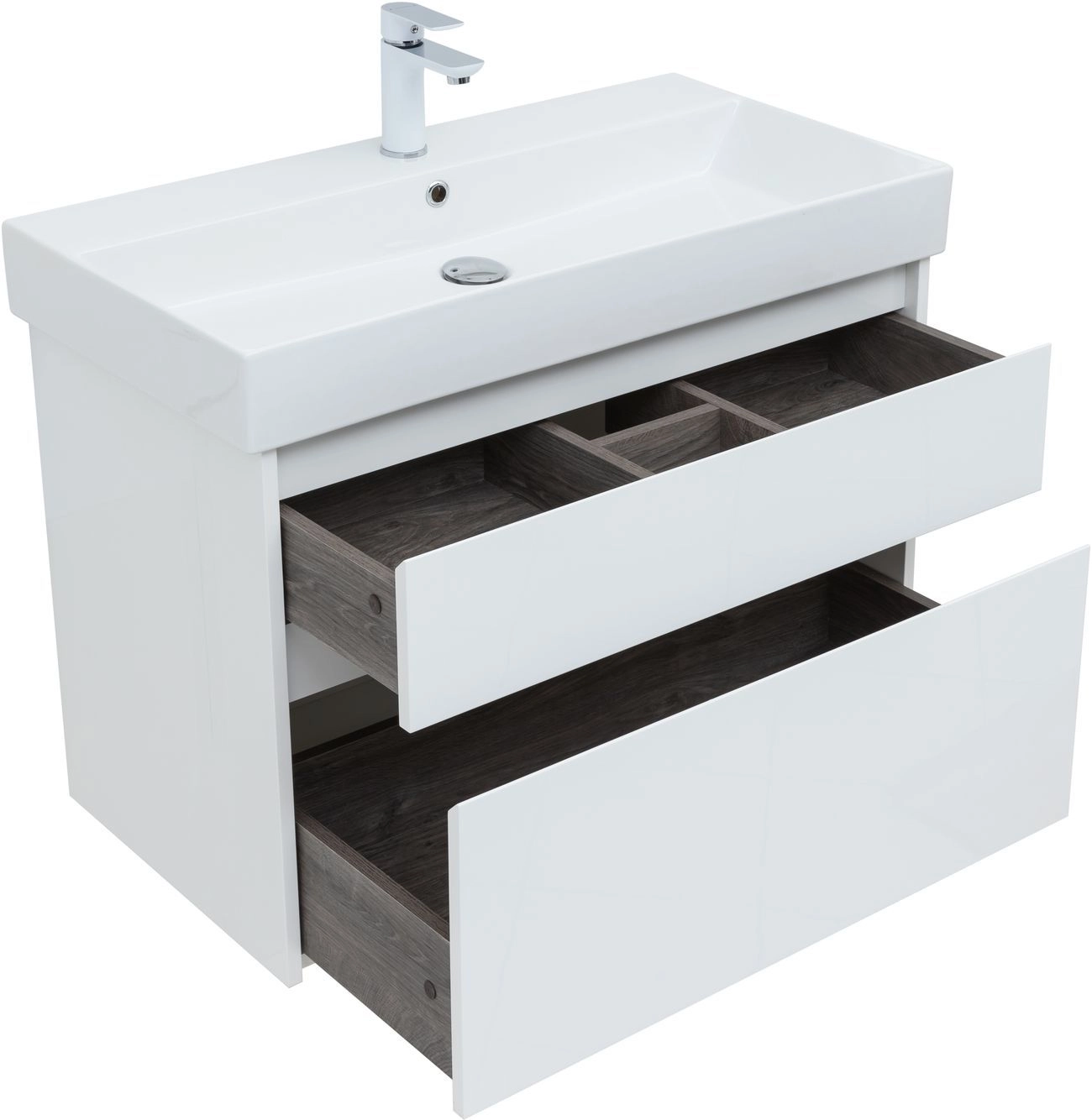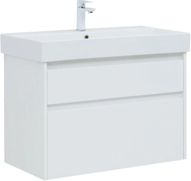 Тумба под раковину в ванную комнату бренда Aquanet выполнена в стиле модерн и входит в нашу коллекцию мебели Nova Lite. Представленная коллекция мебели для ванных комнат осчастливила сотни покупателей, так как они приобрели сочетание дизайна, качества и функциональности. Важный момент при выборе тумбы для умывальника / раковины - это материалы. Они должны быть адаптированы к эксплуатации в условиях повышенной влажности. Влагостойкий ЛДСП - материал, из которого выполнен корпус изделия, фасад - из влагостойкого ЛДСП. При монтаже напольной/подвесной тумбы в первую очередь необходимо учесть ширину, которая равна 82 см. Тумба в цвете белый (белый глянец) освежит Вашу ванну и будет отлично сочетатся с сантехникой. Тумба в ванную также обеспечит вам экономию места, так как в ней предусмотрены вместительные ящики, оснащенные механизмом доводчика.