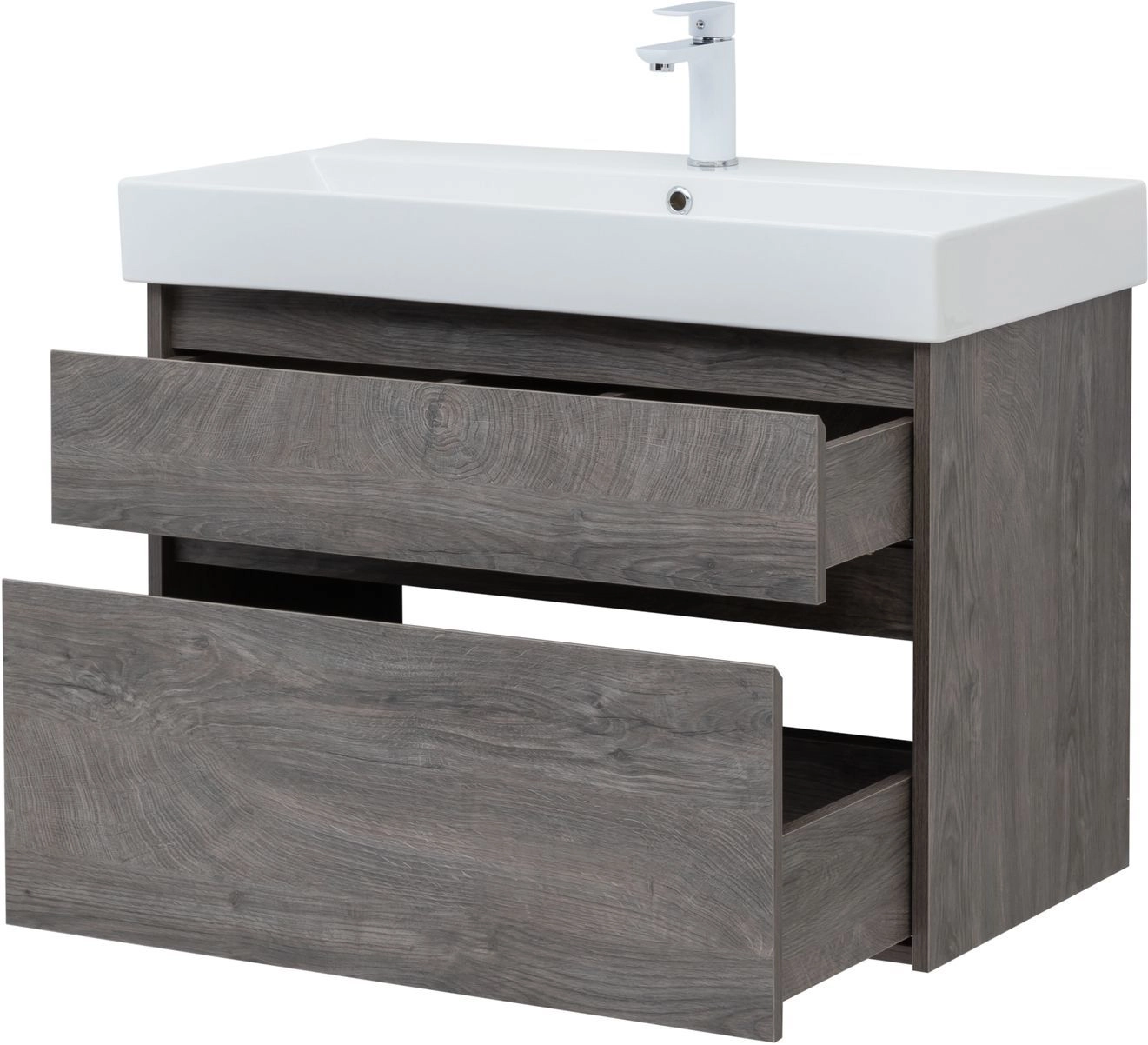 Тумба под раковину в ванную комнату бренда Aquanet выполнена в стиле модерн и входит в нашу коллекцию мебели Nova Lite. Представленная коллекция мебели для ванных комнат осчастливила сотни покупателей, так как они приобрели сочетание дизайна, качества и функциональности. Важный момент при выборе тумбы для умывальника / раковины - это материалы. Они должны быть адаптированы к эксплуатации в условиях повышенной влажности. Влагостойкий ЛДСП - материал, из которого выполнен корпус изделия, фасад - из влагостойкого ЛДСП. При монтаже напольной/подвесной тумбы в первую очередь необходимо учесть ширину, которая равна 82 см. Тумба в цвете темное дерево (дуб рошелье) освежит Вашу ванну и будет отлично сочетатся с сантехникой. Тумба в ванную также обеспечит вам экономию места, так как в ней предусмотрены вместительные ящики, оснащенные механизмом доводчика.