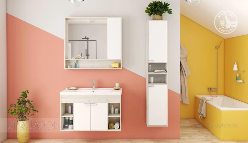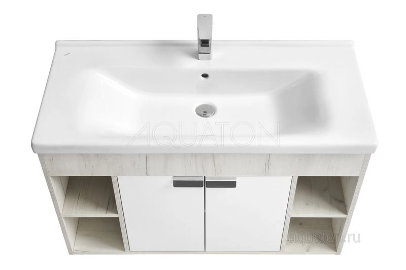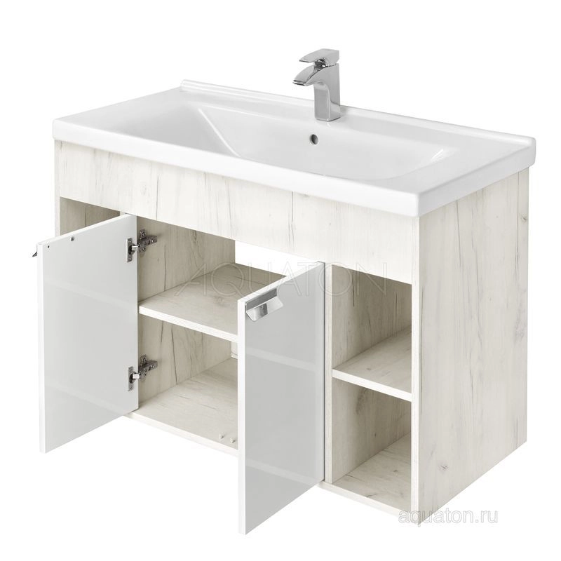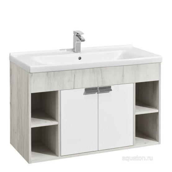 Тумба Флай 100 в современном стиле сочетает в себе два цвета - белоснежный глянец и трендовый декор дуб крафт. Выполненная из влагостойкой ламинированной плиты тумба обладает простым и удобным функционалом - в центре за распашными фасадами-створками находится вместительное отделение с регулируемой по высоте полкой в цвете дуб крафт, а слева и справа - открытые ниши, на которых так приятно разместить красивые мелочи и декор для ванной комнаты. Фасады открываются с помощью изящной и оригинальной ручки от европейского производителя (Испания), петли снабжены доводчиками. Тумба комплектуется белоснежной прямоугольной керамической раковиной Миранда бренда Santek. Фасады тумбы окрашены полиэфирной краской ультрафиолетового отверждения. Такой способ окрашивания обеспечивает изделию привлекательный внешний вид, а также износостойкость и долговечность.