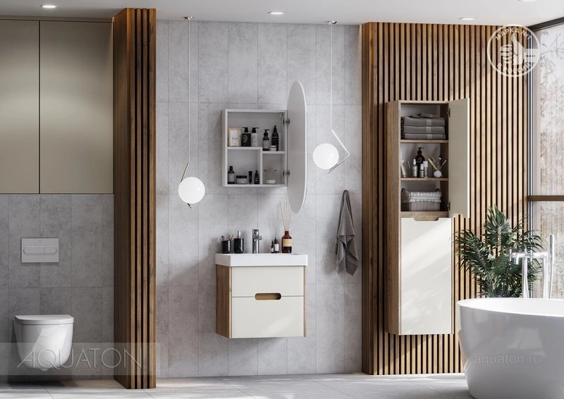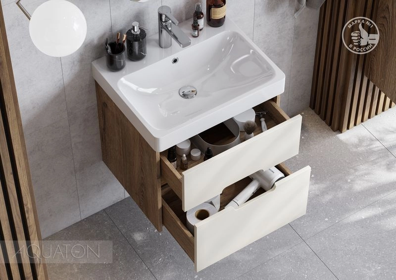 Тумба комплектуется удобной современной керамической раковиной Адриана от бренда Santek.