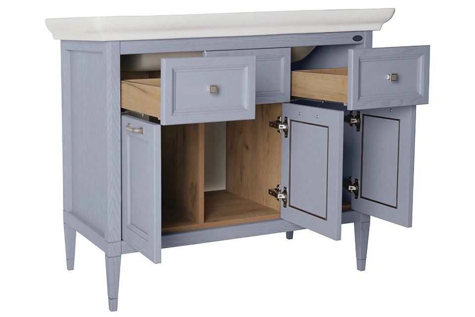 Корпус и фасад из массива ясеня. Мебель для ванной Гранда - это изысканный дизайн, безупречный стиль и качественные материалы, все это делает мебель Гранда воплощением красоты и качества. В мебели используется фурнитура ведущих европейских производителей, дверки с доводчиками (плавное закрывание без хлопка), ящики полного выдвижения с доводчиком.