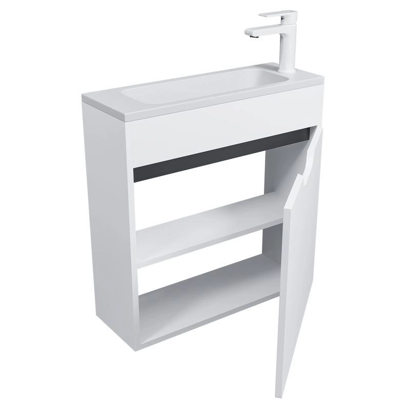 Размерный ряд тумб под раковину Uperwood Modul представлен моделями 50 и 60 см с одной дверцей или одной дверцей и открытыми полками. Тумбы под раковину размерами 65-100 см представлены в моделями с двумя выдвижными ящиками.