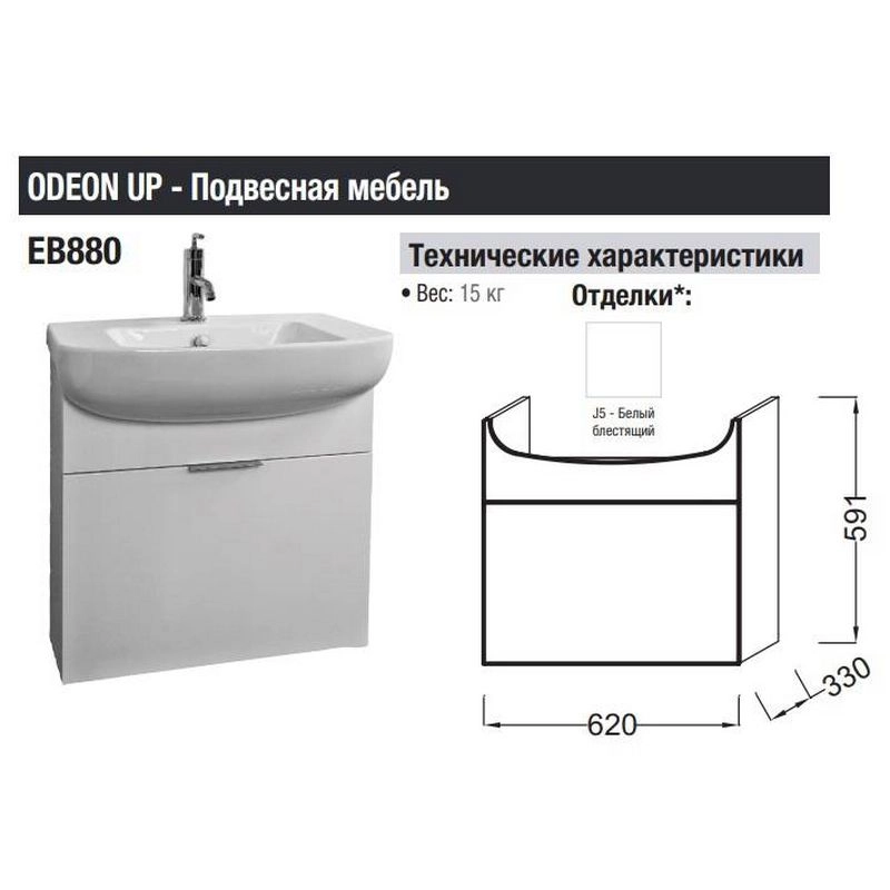 КОЛЛЕКЦИЯ :ODEON UP РАЗМЕРЫ :62 x 33 x 59,10 см ВЕС :15 кг ФИКСАЦИЯ: : Установщику понадобится набор крепежей для монтажа на стену