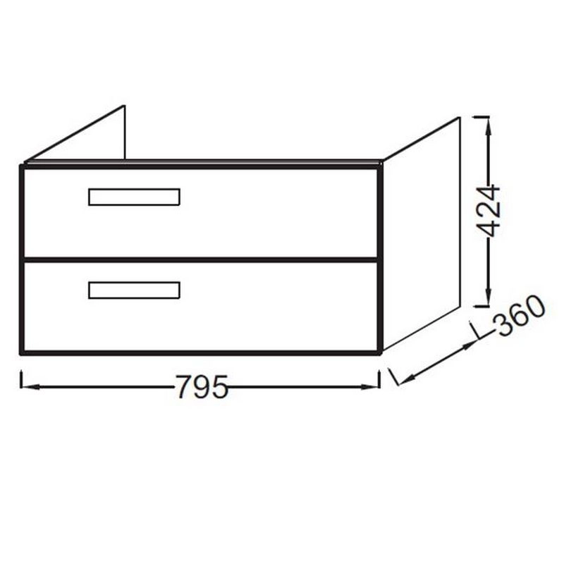 КОЛЛЕКЦИЯ :RYTHMIK РАЗМЕРЫ :79,50 x 36 x 42,40 см ВЕС :28 кг УСТАНОВКА : Подвесная ТИП МЕБЕЛИ: 2 выдвижных ящика с механизмом «плавное закрывание» ФИКСАЦИЯ: : Установщику понадобится набор крепежей для монтажа на стену