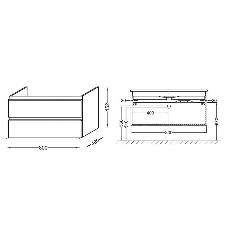 КОЛЛЕКЦИЯ :VOX РАЗМЕРЫ :80 x 46 x 45 см ВЕС :25 кг УСТАНОВКА : Крепление к стене ТИП МЕБЕЛИ: 2 выдвижных ящика с механизмом «плавное закрывание» РУЧКИ: : Встроенная ручка из нержавеющей стали ФИКСАЦИЯ: : Установщику понадобится набор крепежей для монтажа