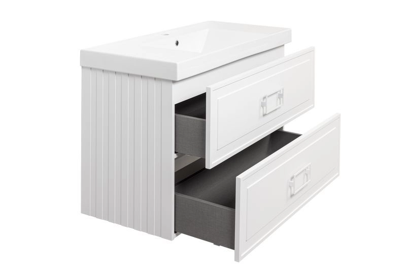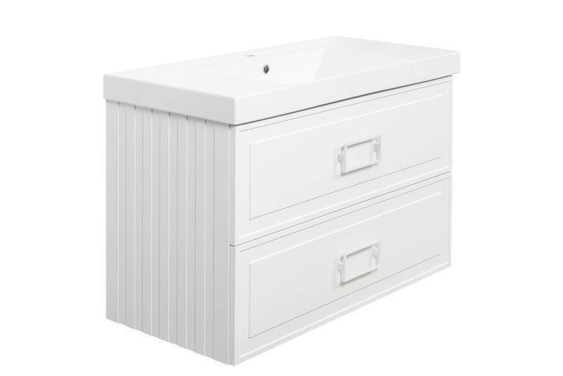 При комплектации изделия можно выбрать столешницу, раковину. Состав комплекта : Тумба, ручки, сифон Prevex, набор для монтажа ( монтажная планка, дюбеля, саморезы)