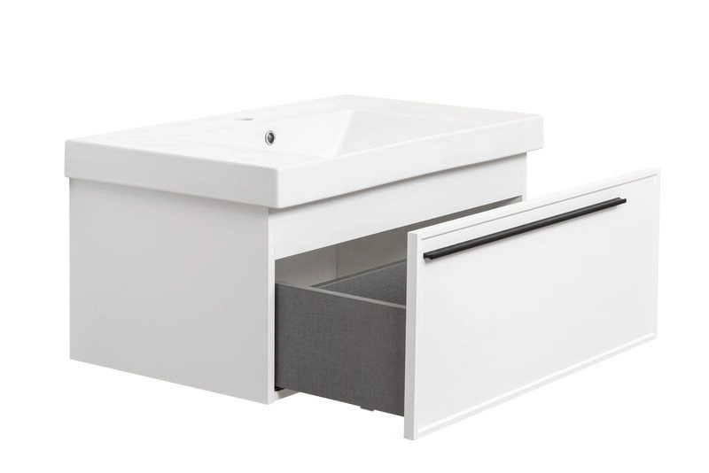 При комплектации изделия можно выбрать столешницу, раковину. Состав комплекта : Тумба, ручка, сифон Prevex, набор для монтажа ( монтажная планка, дюбеля, саморезы)