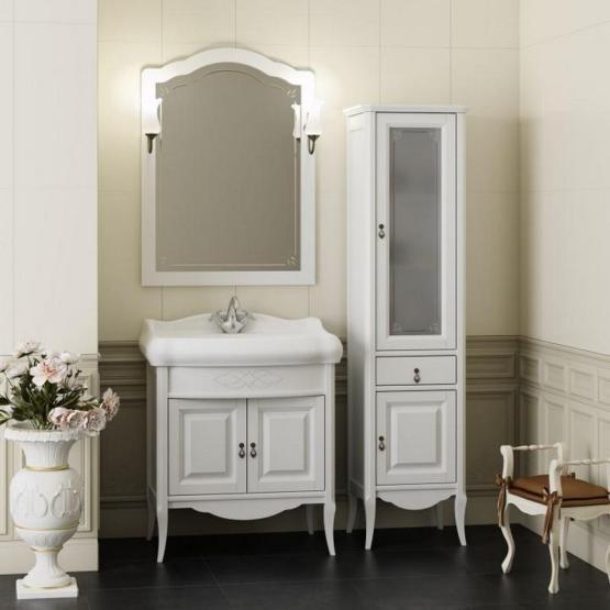 Вся мебель Opadiris покрыта прочным слоем влагостойкого лака. Материалы изготовления : Массив дерева — Бук. Корпус : Корпус мебели изготавливается из ламинированных панелей ДСП высшего сорта категории качества Е1 а в некоторых изделиях из ценных пород массива дерева (БУК). Обладает повышенной влагостойкостью и сопротивляемостью износам и ударам. Не выделяет вредных испарений в воздух, хорошо выдерживает воздействие бытовых химических средств. Края корпусных деталей так же защищены ПВХ кромкой. Отделка : Защитный слой фасадов и корпусных деталей состоит из нескольких слоев грунта и матовой отделочной эмали производства Herberiz (Германия) и Renner(Италия). Фурнитура : Надежная фурнитура BRASS (Испания Италия), BOYARD и HETTICH (Германия). Коллекция «Лоренцо» выполнена в классическом стиле. Фасад выполнен из массива бука. В моделях коллекции «Лоренцо» применены новые технологии фрезеровки фасадов, а также лазерная гравировка зеркал, что подчеркивает их непревзойдённый дизайн.Керамическая раковина.