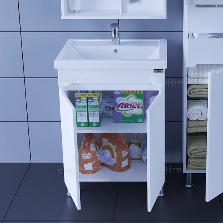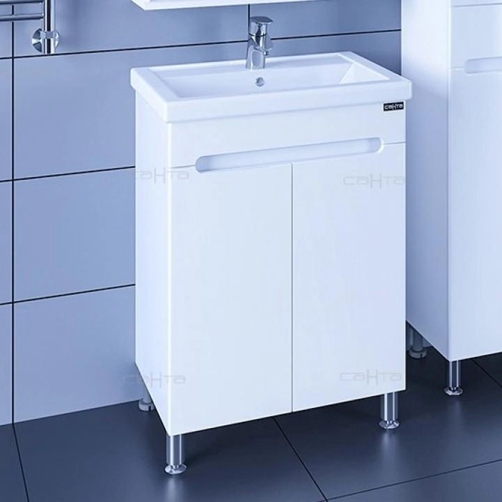 Комплектация: ножка хром - 2 шт., ножка пластик 2 шт., петли с плавным закрыванием - 2 шт. Тумба для умывальника напольная "Лондон 60 " 2 дв. (ум.Фостер 60)