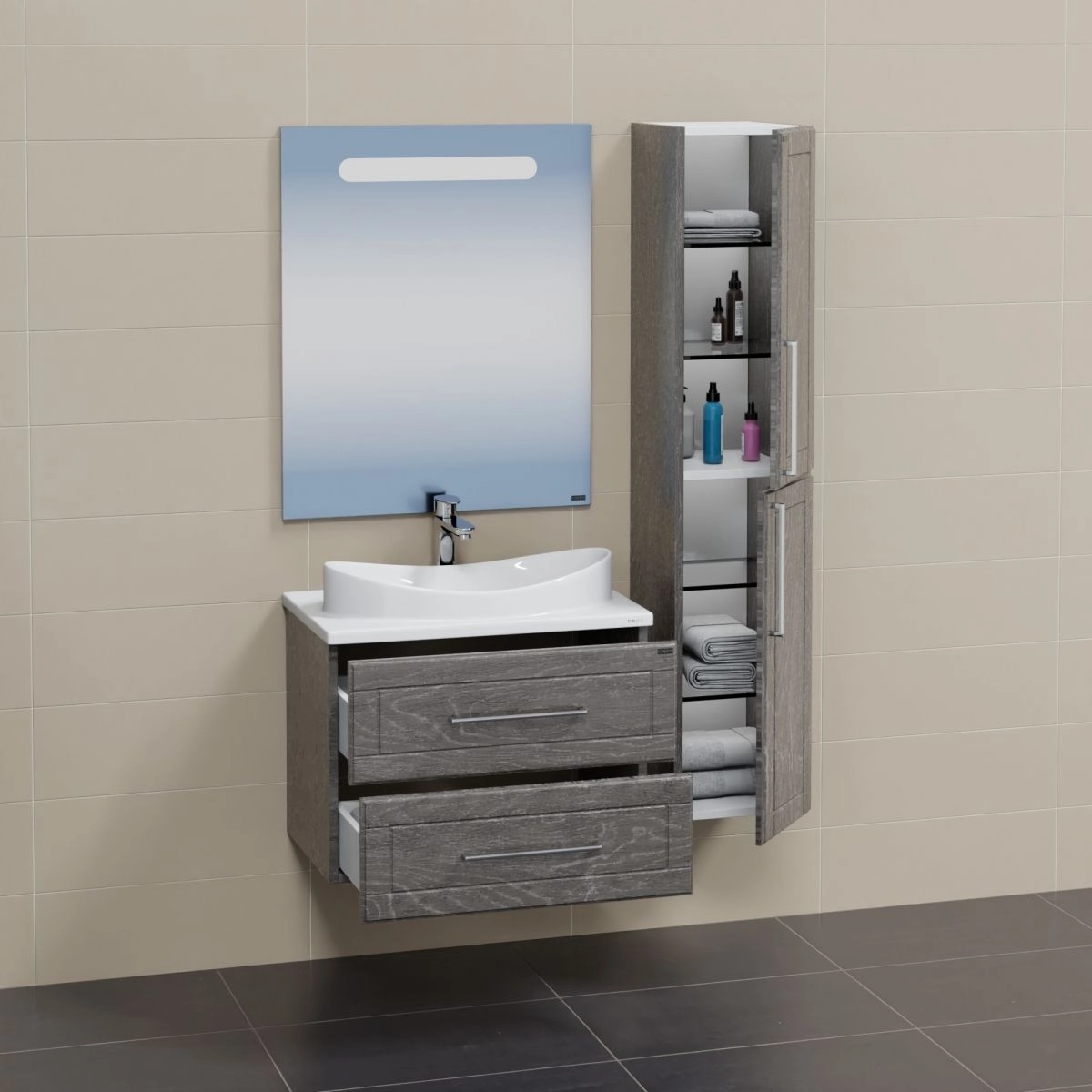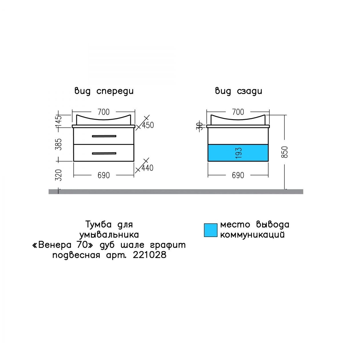 Тумба для умыв. "Венера 70" дуб шале графит, подвес. (ум Вега 70 литой мрамор) Материал корпуса МДФ. Материал Фасада МДФ. Покрытие пленка.