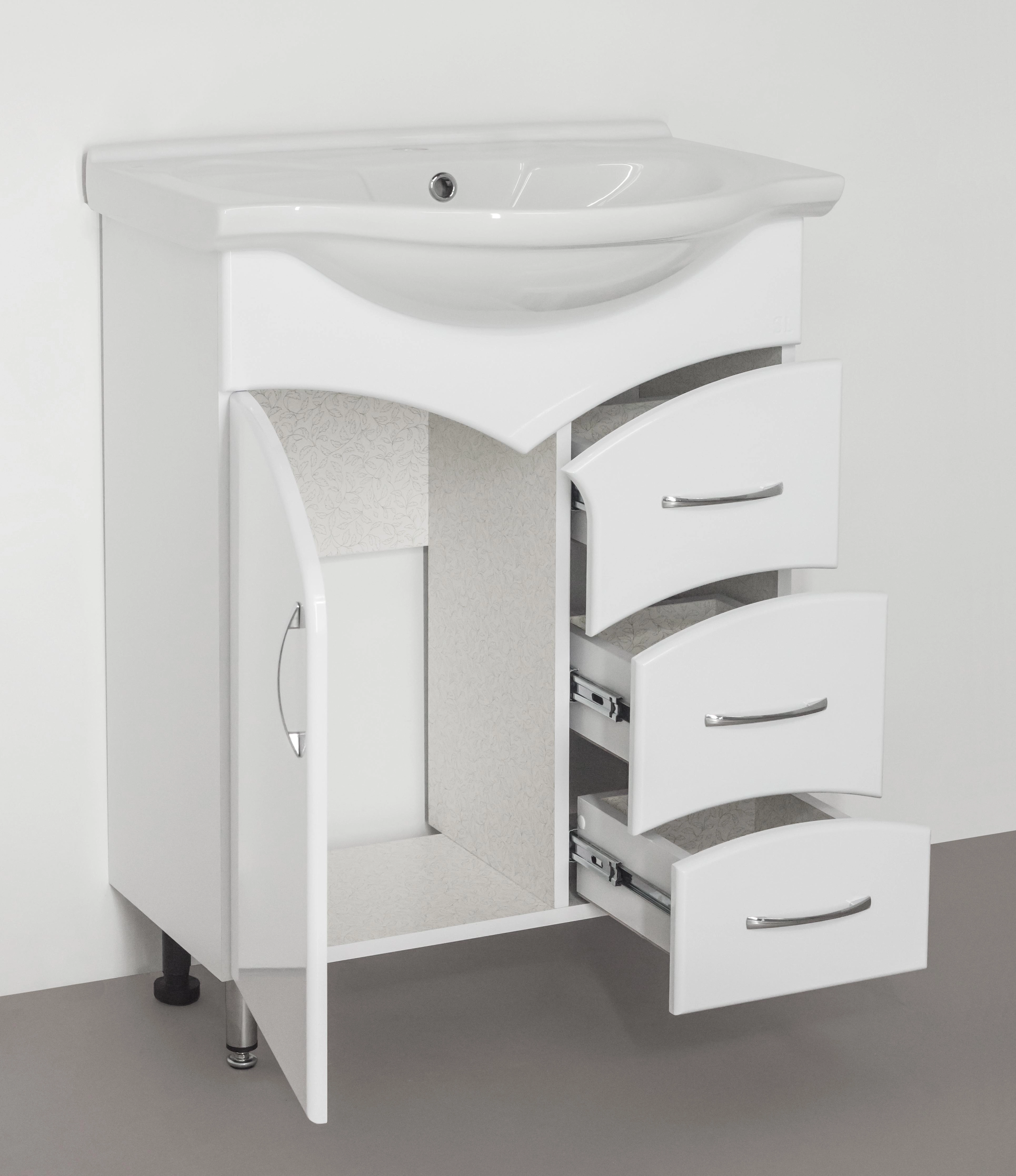 1. Вся мебель изготовлена на оборудовании производства Германии, Австрии, Италии 2. При изготовлении мебели для ванных комнат Style line используют только качественные влагостойкие материалы 3. Корпус изделий изготовлен из влагостойкой ДСП 16 мм, торцы деталей корпуса обработаны кромкой ПВХ толщиной 0,4 мм, фасады мебели изготовлены из МДФ толщиной 16 мм производства завода "Кроношпан" - ведущего российского производителя МДФ и ДСП 3. Все материалы, используемые нами при производстве мебели, имеют сертификаты соответствия 4. Для приклеивания пленки ПВХ на лицевую сторону элементов используется однокомпонентный клей производства Италии, а это значит, что исключена вероятность нарушения консистенции клея, и, следовательно, снижения качества приклейки пленки 5. Для наших изделий мы используем фабричную фурнитуру лучших производителей, покрытую антикоррозийным составом, что позволяет эксплуатировать ее в агрессивной влажной среде ванных комнат 6. Производственный цикл построен таким образом, что вся мебель проходит контроль качества на каждом этапе производства, что сводит к минимуму вероятность возникновения производственного брака Тумба напольная бренда "Style Line" Эко Стандарт 22 с 3 ящиками. Фурнитура - хром, эксклюзивный декор "Луино" - ламинация внутренней стороны изделия. Направляющие полного выдвижения Hettich; сборка изделия с помощью эксцентриковых стяжек Hafele; все материалы полностью влагостойкие. Данная тумба предусматривает открытую подводку воды