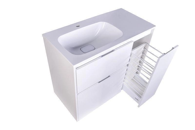 Для подвесных тумб используются усиленные хромированные навесы "CAMAR", мирового лидера в производстве высококачественных креплений для мебели.